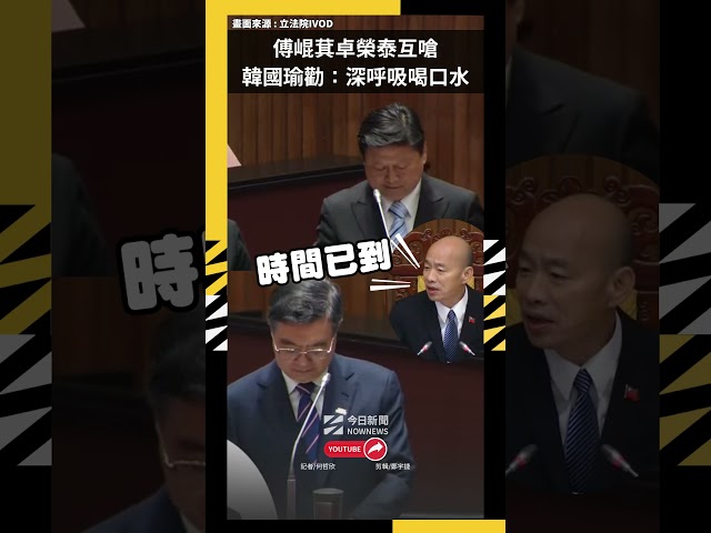 因質詢時間已到,立法院長韓國瑜也緩頰喊「謝謝,時間已到,謝謝傅崐萁委員、林倩綺委員質詢,謝謝卓院長相關部會首長備詢,深呼吸喝口水。」