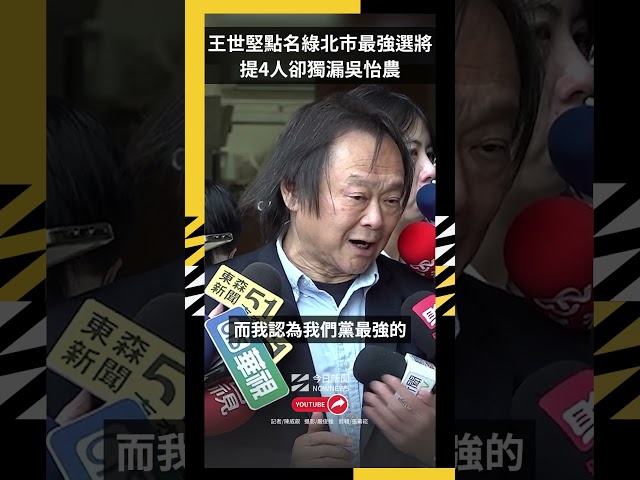 王世堅拋綠北市最強選將 提4人獨漏吳怡農