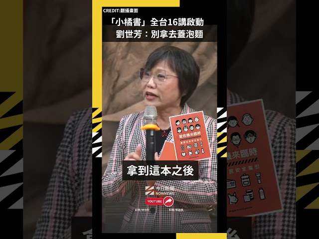 [NOWnews今日新聞] 為推動全民防災觀念,內政部今(9)日於基隆慶安宮舉辦第1場《台灣全民安全指引》宣講會,由內政部長劉世芳、消防署長蕭煥章,以及民進黨立委王正旭主講。劉世芳宣講時,以台語親切向地方鄉親充分說明,並呼籲民眾拿到小橘書後妥善運用,不要「拿去蓋泡麵」。