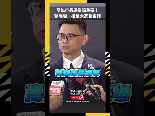 [NOWnews今日新聞] 民進黨今(3)日舉行2026年高雄市長提名政見會,民進黨立委賴瑞隆於會後受訪時表示,2026年的高雄市長選舉非常重要,不只影響到高雄整體發展,也影響台灣的未來,相信四位同志在初選後,一定會團結一致,不會有脫黨的狀況。