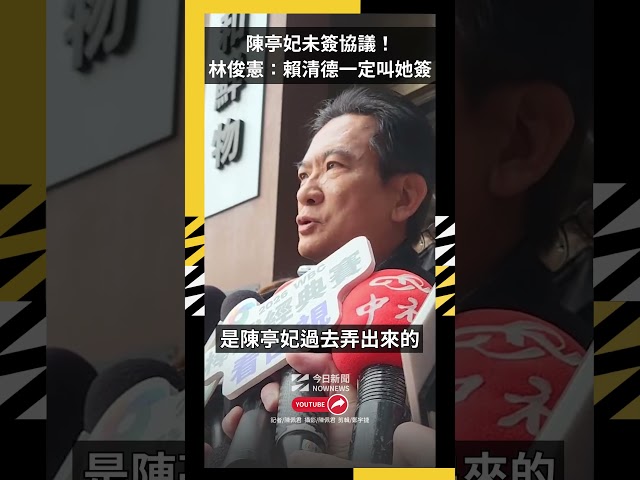 [NOWnews今日新聞] 民進黨台南市長初選落幕,由立委陳亭妃勝出,「挺憲派」議員則要求她簽署「2026民進黨勝選共同聲明,三點協議保證」,但陳未簽字。對此,民進黨立委林俊憲今(21)日被媒體問到,陳亭妃若向主席賴清德請益一事,直言「賴主席一定叫她趕快簽字吧!」