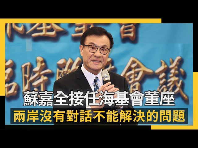 [NOWnews今日新聞] 海基會前董事長吳豐山在去年12月18日突然宣布請辭,海基會今(23)日舉行第12屆董監事第1次臨時聯席會議,會中通過前立法院長蘇嘉全接任海基會新任董事長。蘇嘉全呼籲中國能體現大國責任,回到以人民利益與福祉為優先的初衷,不再以政治前提阻礙兩岸兩會的正常交流,只要對岸領導人有心把人民放在首位,透過兩岸兩會務實溝通,兩岸間就沒有對話不能解決的問題。