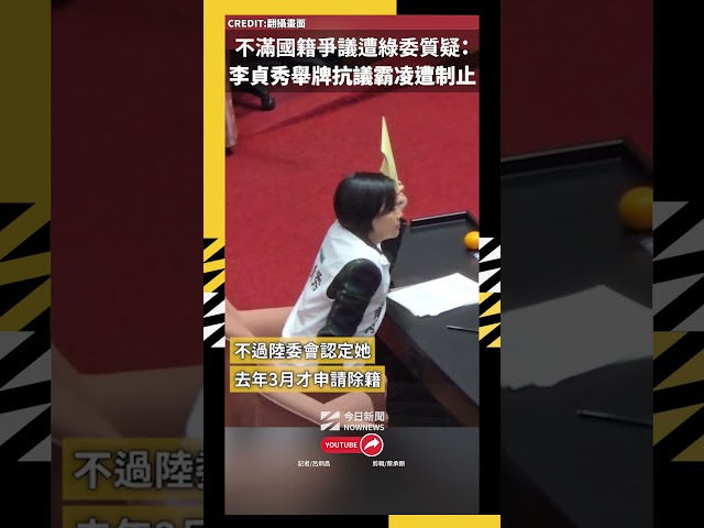[NOWnews今日新聞] 民眾黨中配立委李貞秀陷入國籍爭議,李貞秀2月13日跑到陸委會前開記者會,出示除去中國大陸戶籍證明,並遞交放棄中國國籍授權書。不過,陸委會副主委梁文傑今(24)日仍指出,李貞秀的除籍證明格式與其他中配繳交的不同,陸委會還是認定她在去年3月才申請除籍,陸委會對李貞秀的就職條件還是有疑慮。對此,李貞秀今日立法院院會在梁文傑答詢時,舉「霸凌」紙條抗議,要求尊重中華民國憲法,遭到立法院長韓國瑜制止。