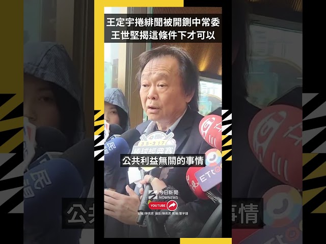 [NOWnews今日新聞] 民進黨立委王定宇再爆緋聞,傳出民進黨秘書長徐國勇知悉後相當不滿,還傳出黨主席賴清德可能開鍘王定宇的中常委資格。對此,民進黨立委、中常委王世堅今(4)日認為,可以,但若為此事要拔去中常委,要有一定的程序,因此他認為只是傳言。