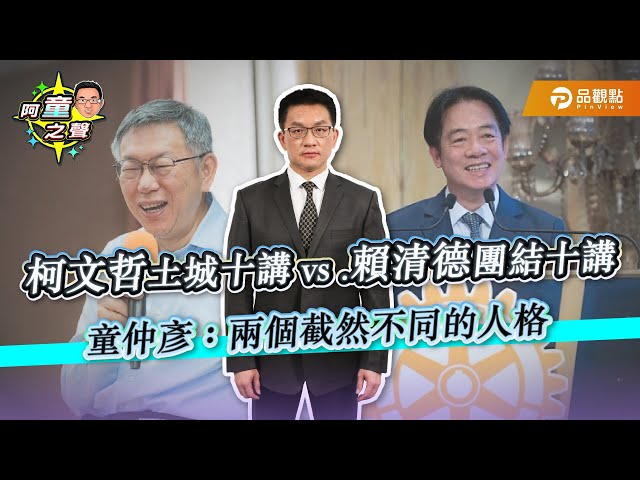 前議員童仲彥在「阿童之聲」節目中,詳細對比柯文哲「土城十講第一講」與賴清德「團結十講」,直言前者講述寬恕和解、後者淪為分裂製造機,並嘆「柯文哲在教賴清德當總統」。