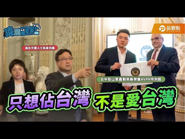 近日在法國巴黎茶葉比賽中,台中梨山茶農獲獎時,現場出現疑似中國籍人士抗議「台灣只是中國一省」。黃暐瀚質疑:「既然你都把台灣當成中國一省,台灣得獎了你不是應該高興嗎?」他比喻,這就像父親在兒子領獎時站起來抗議一樣荒謬。
