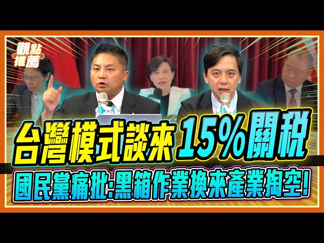 行政院宣布台美貿易談判達成重大突破,美方同意將對台對等關稅從20%調降至15%,並給予半導體及相關產品232關稅最優惠待遇。副院長鄭麗君於美東時間15日晚間召開記者會說明談判成果。