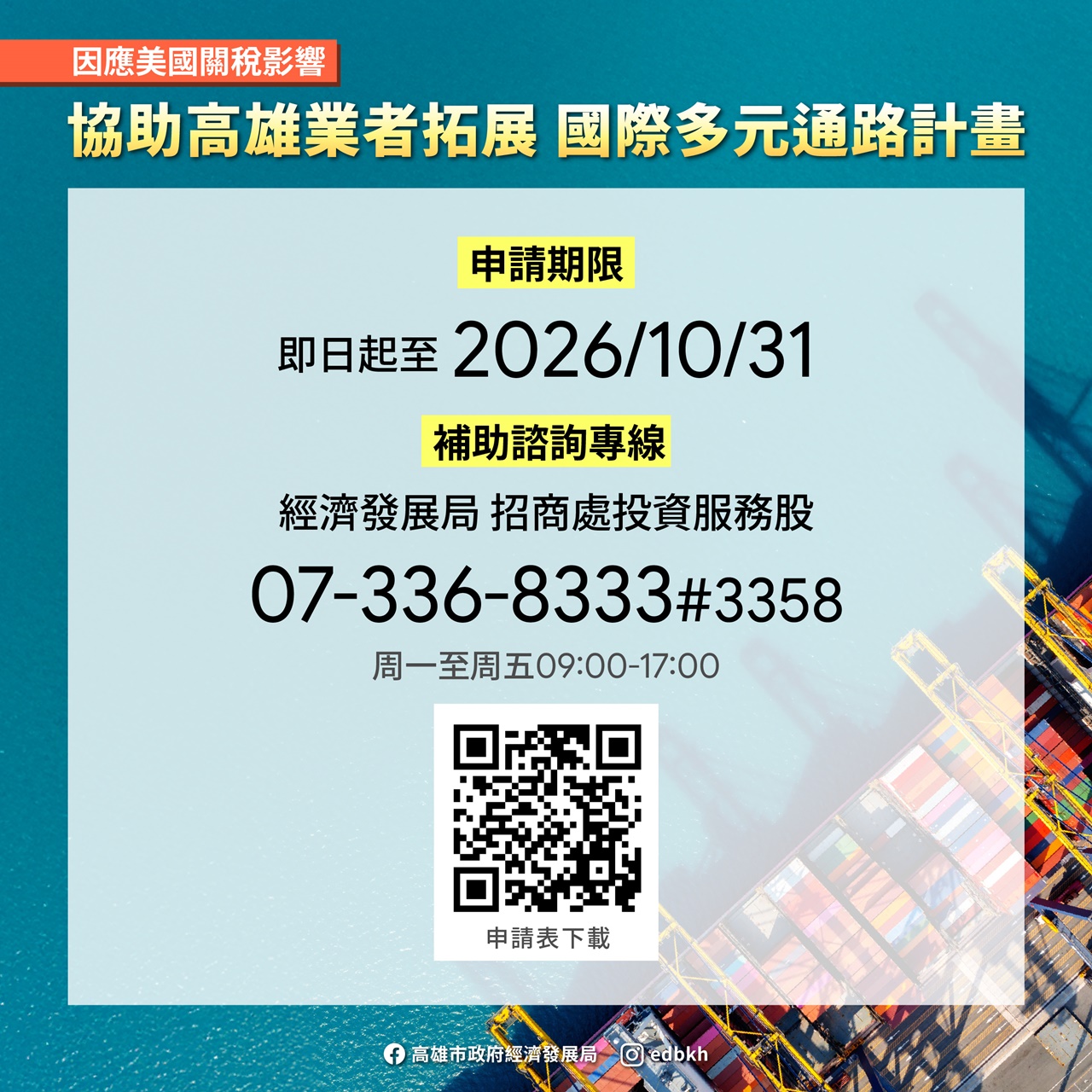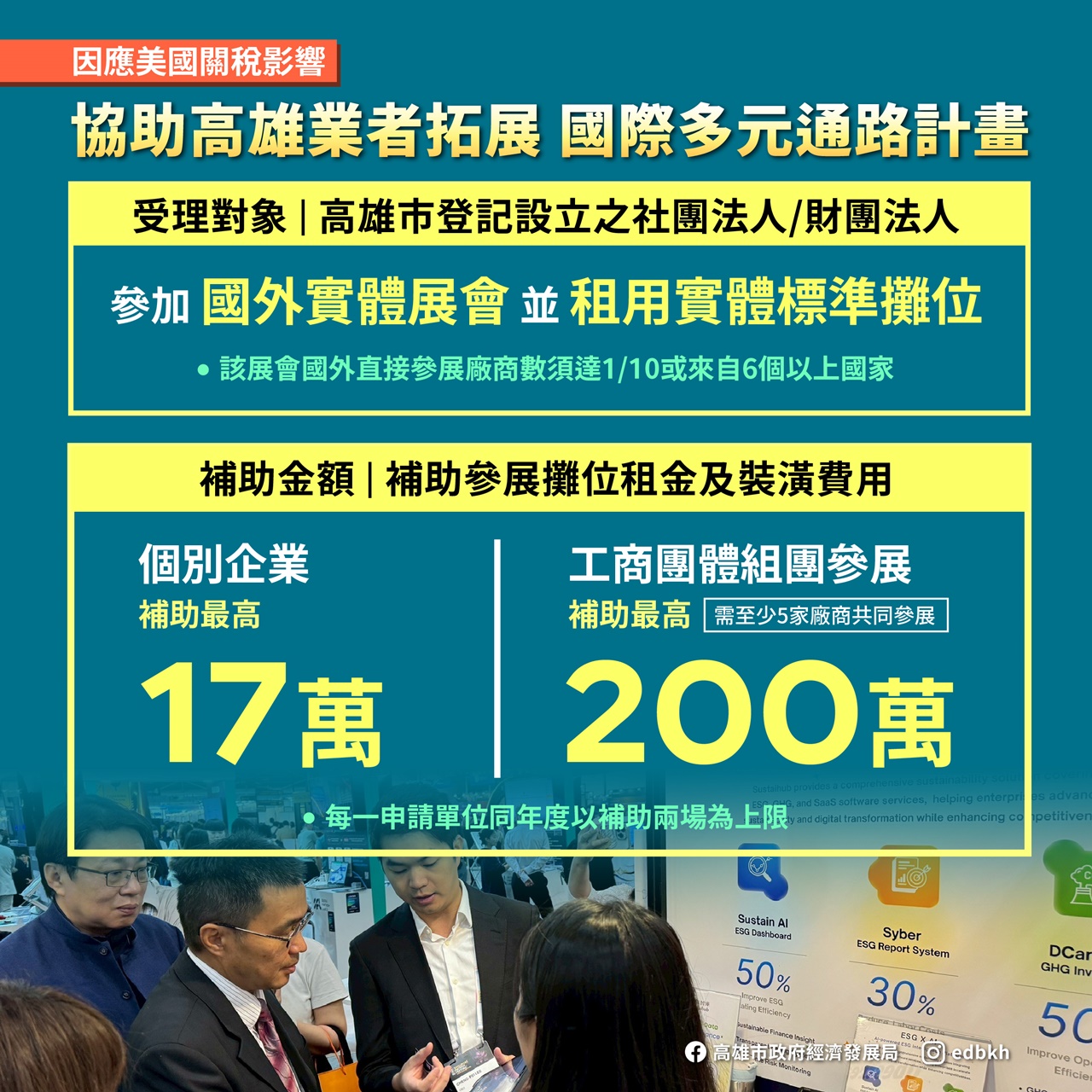 為協助受關稅影響業者進行升級轉型、拓展海外商機,陳其邁於會中宣布,市府將陸續推出「輔導產業升級轉型補助計畫」及「協助拓展國際多元通路計畫」。受影響業者可透過升級轉型補助計畫,加速導入數位工具與智慧製造應用,朝高值化產品發展;並藉由拓展國際多元通路計畫,支持業者與工商團體參與國際實體展會,強化國際曝光度,分散單一市場風險,提升出口市場多元化。兩項計畫將於議會完成預算審議後公告實施。