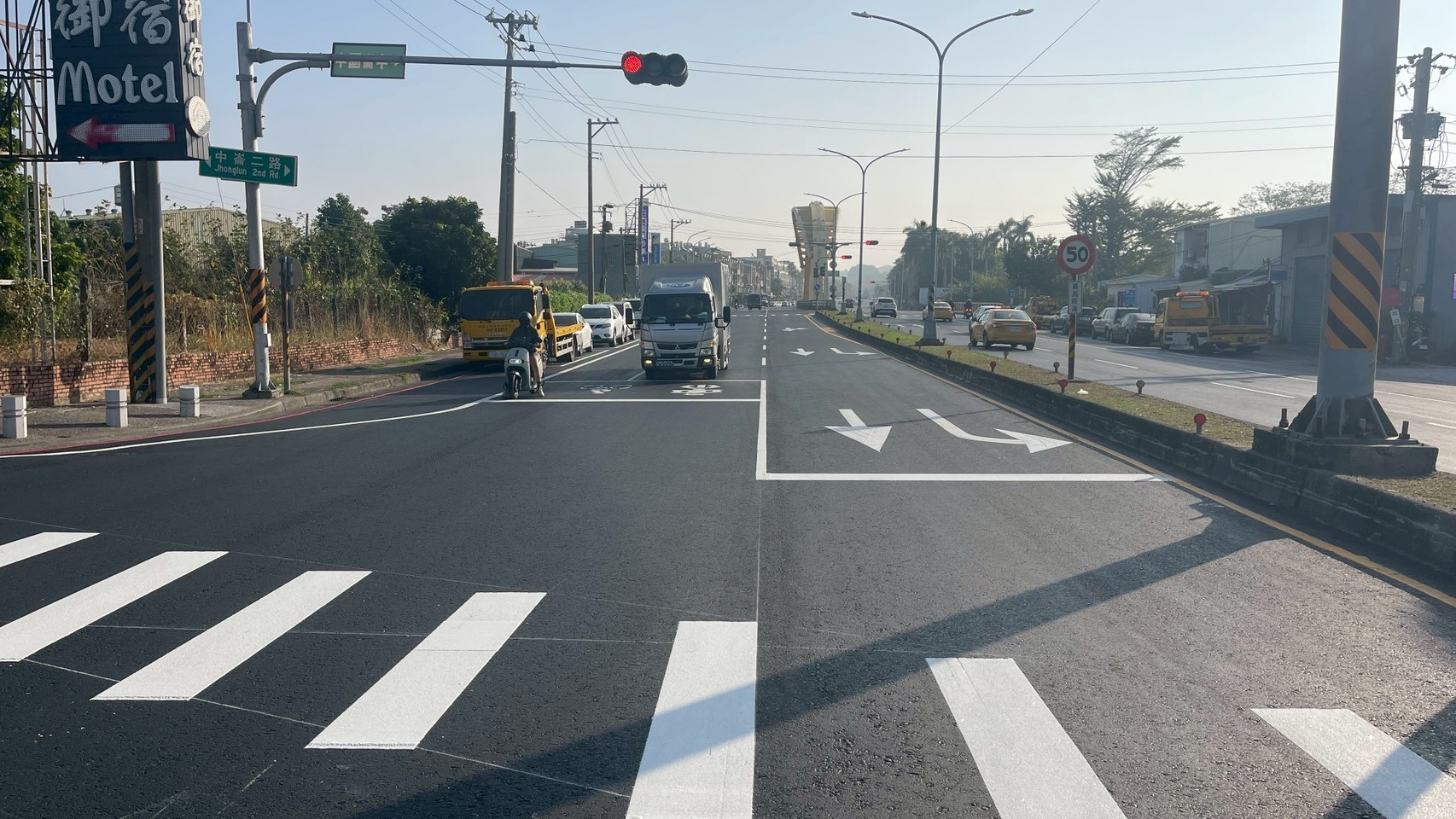 二路),是鳳山及附近小港、前鎮等區居民往來路線,工務局長楊欽富今(12)日表示,為提升用路品質,道路養護工程處獲內政部國土管理署經費補助,改善經費約1,110萬,於近期完成路面翻新並增設左轉車道及自行車道,通行更舒適安全。