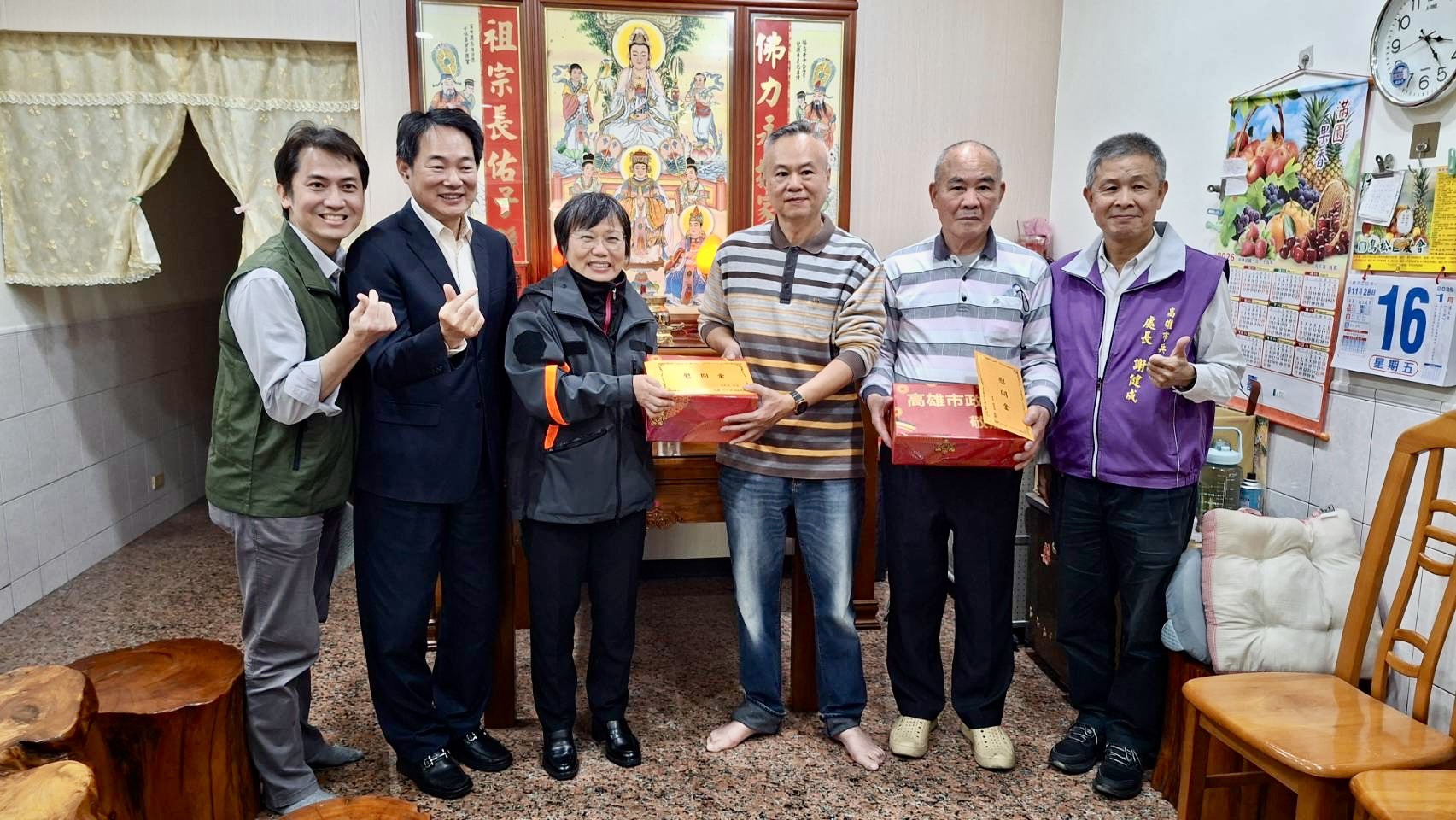 農曆春節將近,內政部長劉世芳於今(16)日前往高雄市鳳山區及鳥松區,探視2位服役期間因公受傷的退伍弟兄,致贈春節慰問金,肯定服役期間受傷的弟兄為國家付出,感謝家屬長期的照護,讓弟兄與家屬在春節前夕感受到政府的陪伴與支持。