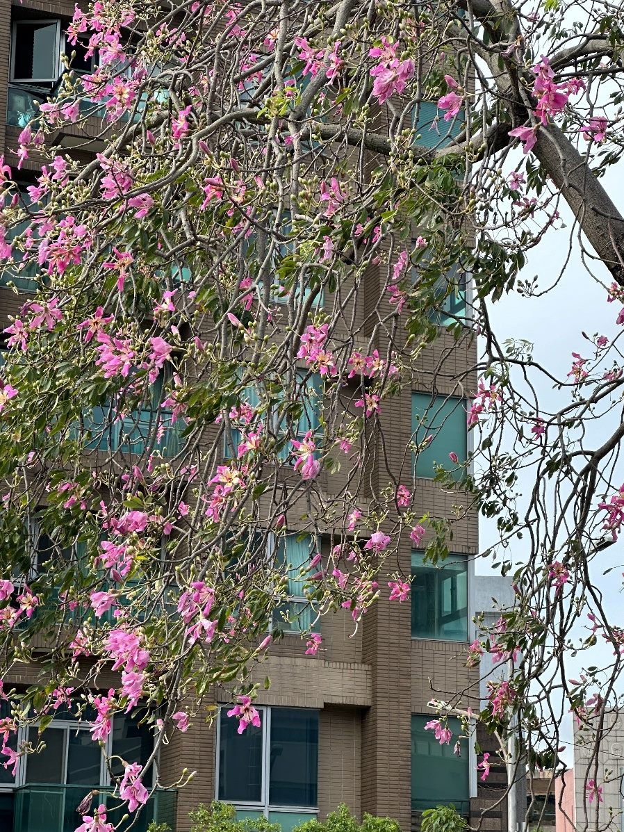 秋分的臺北街頭,人行道上粉嫩嬌豔的美人樹花朵紛紛綻放,淡粉身影靜立藍色天空下,迎著陽光照射出無限旖旎,尤其在西風吹拂下,美人樹婀娜多姿隨風搖曳,令人著迷駐足。正逢中秋佳節,正是花好月圓人團圓的最佳寫照。
