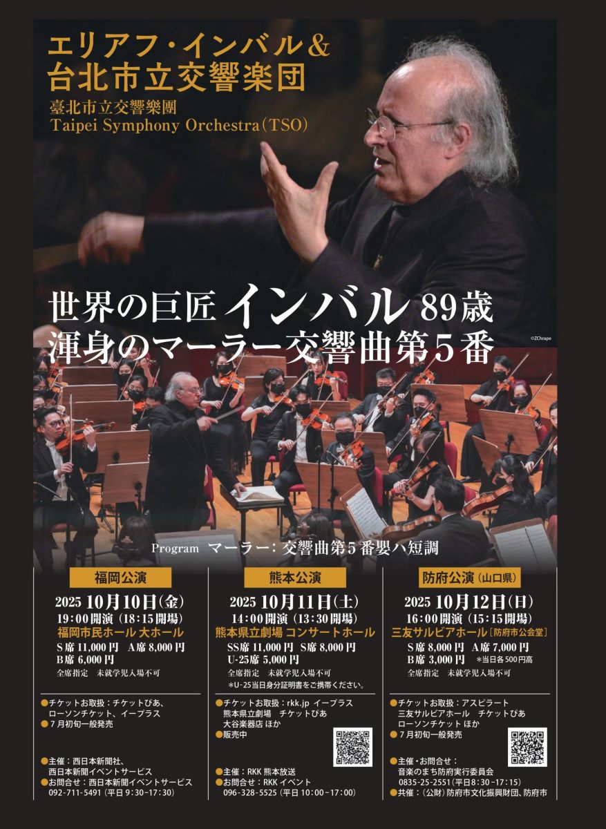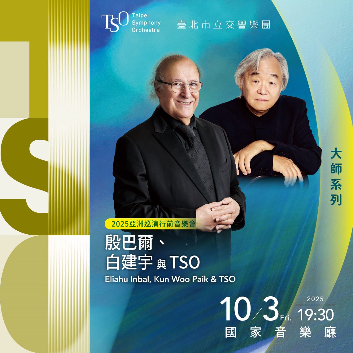 臺北市立交響樂團(TSO)將於 10 月 3 日在國家音樂廳舉辦「殷巴爾、白建宇與TSO──亞洲巡演行前音樂會」,隨後10月10日起前往日本福岡、熊本、防府,以及韓國富川、統營五大城市演出。本次巡演的焦點曲目為馬勒第五號交響曲及經典的蕭邦第二號鋼琴協奏曲,由桂冠指揮殷巴爾攜手鋼琴巨匠白建宇與TSO,聯手呈獻這場情感與技巧交織的音樂饗宴。