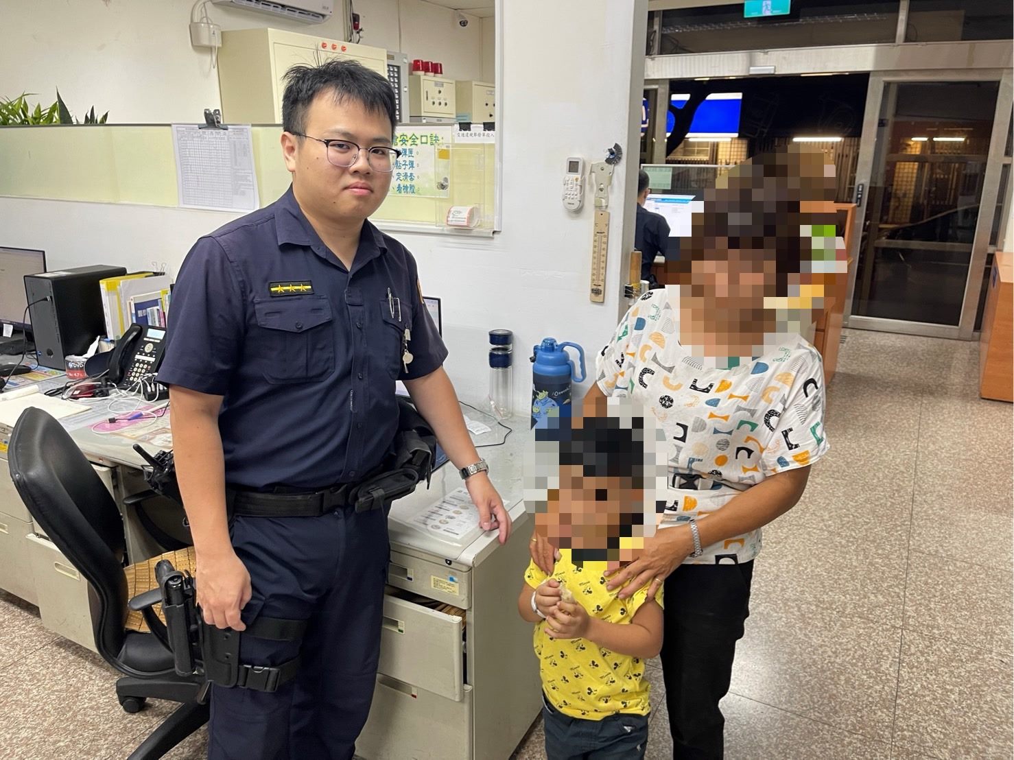 返所後,員警貼心購買餅乾、布丁等零食給男童充飢,同時安排同仁洪一民調閱路口監視器,發現孩童疑似從某大樓跑出。經逐戶詢問,順利取得其母親聯絡方式,遂立即通知到派出所將男童帶回。不久後,男童母親趕抵派出所,對警方及時協助尋回兒子深表感謝。她表示,當時正在整理廚房,未注意到孩子自行開門外出,發現人不見後心急如焚,正準備出門尋找時即接獲警方來電通知,讓她鬆了一口氣,也承諾日後會更加留意,避免類似狀況再度發生。