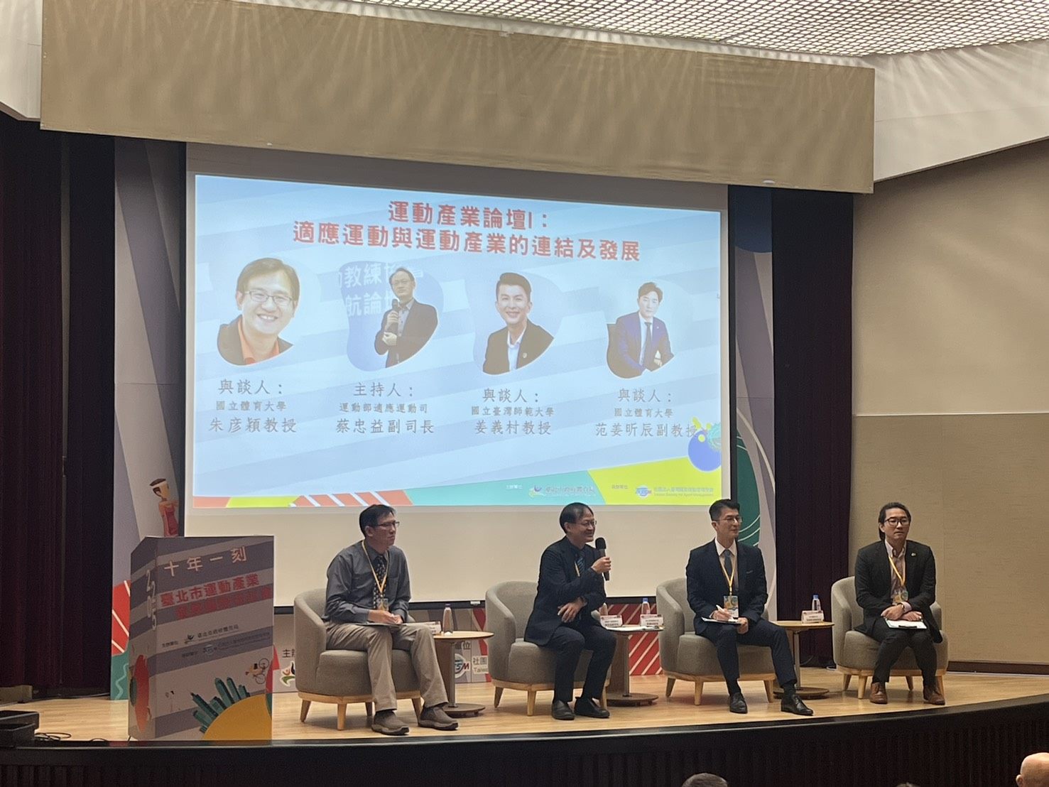 為推動運動產業多元發展並促進全民參與,「適應運動與運動產業的連結及發展」成為焦點之一。由甫成立的運動部適應運動司蔡忠益副司長主持,邀請國立臺灣師範大學姜義村教授、國立體育大學朱彥穎教授及范姜昕辰副教授共同與談,探討如何推動適應運動與產業的融合發展,打造兼具包容性與經濟潛力的運動生態,讓全民共享運動的價值與樂趣。