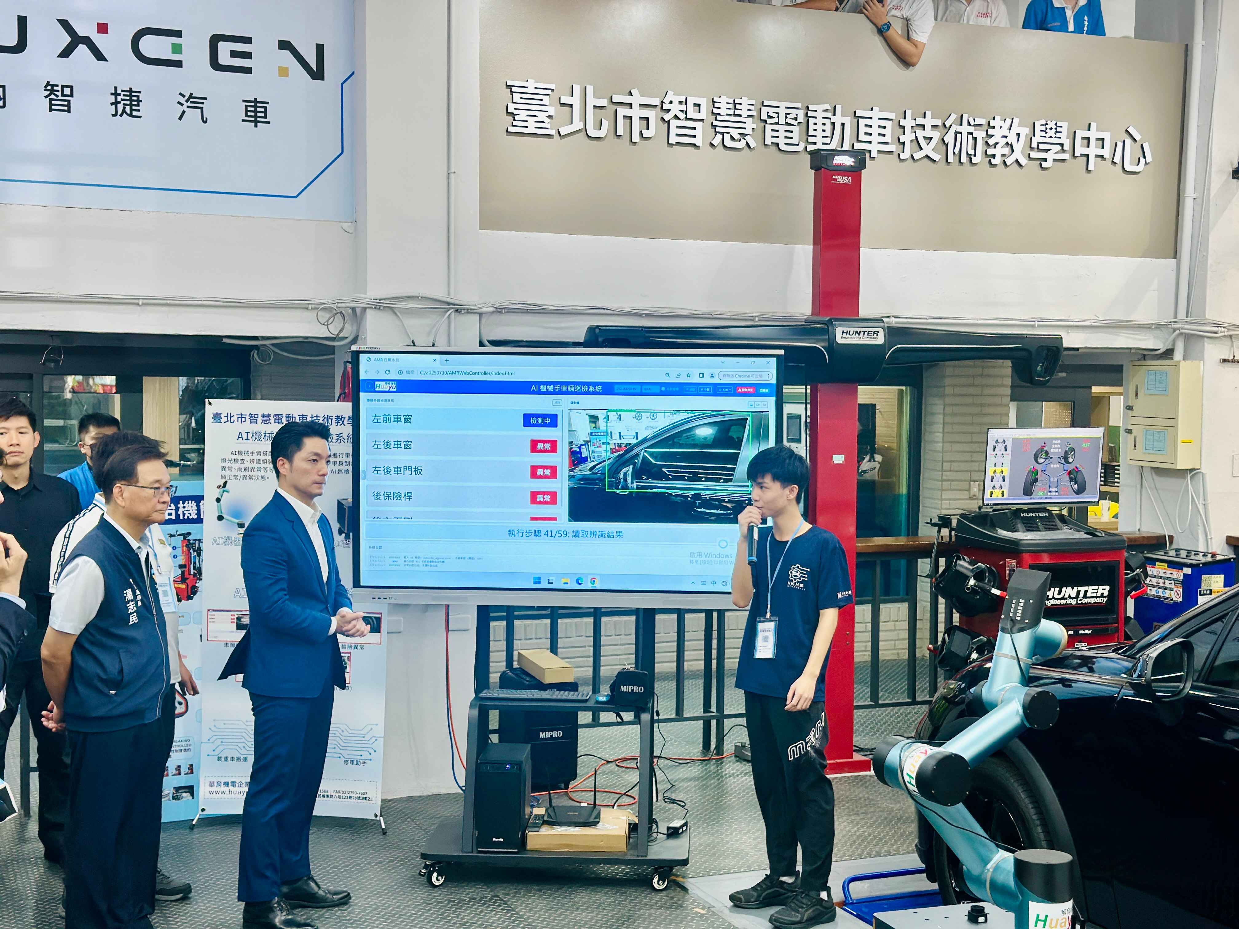 臺北市智慧電動車技術教學中心係以原有電動車技術教學中心為基礎打造,本次升級首先獲得納智捷汽車股份有限公司捐贈首款國產純電休旅車LUXGEN n7,教育局為推動自動化技術課程,亦添購業界最新電動車專業維修檢測工具設備儀器、AI智慧機器手臂車檢驗平臺、電動車輪胎半自動拆裝平臺、ADAS智慧駕駛四輪定位儀、雙柱頂車機、充電樁、滅火毯等安全防護設備;最大亮點在於導入機械手臂檢測,透過透過AI深度學習模型,即時呈現精準檢測結果;此外,亦導入專業教材與技術認證制度,完善全套智慧電動車課程鏈。透過產官學合作,臺北市希望讓學生不只學會汽車修護技術,更能具備跨域與創新能力,為智慧交通與綠色能源產業培育堅實人才。