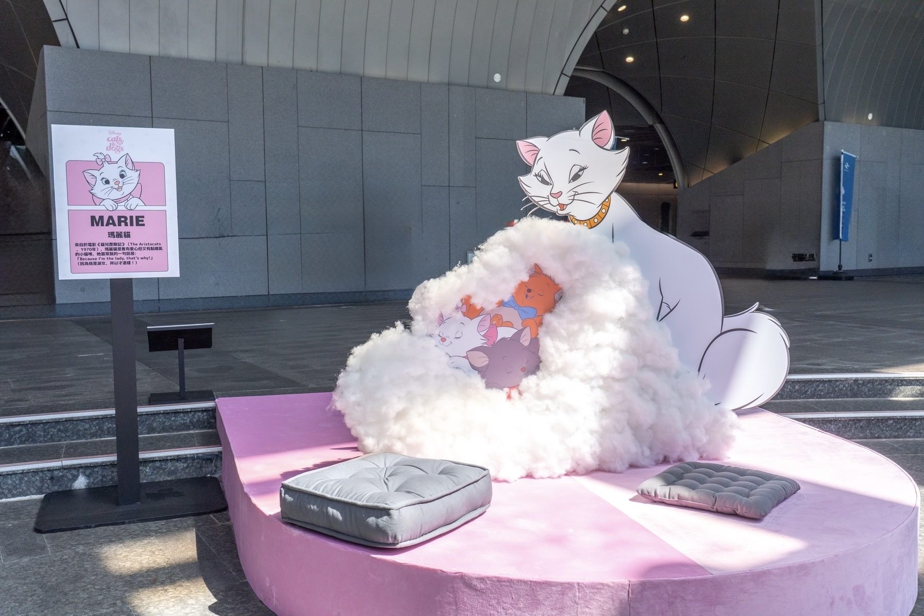 《仙履奇緣》裡的淘氣貓咪「魯斯佛」,化身4公尺高、以短茸毛材質打造的巨型氣偶,在大安森林公園站陽光大廳霸氣亮相,喵力全開!現場更集結《貓兒歷險記》的「瑪莉貓」、《木偶奇遇記》的「費加洛」、《101忠狗》的斑點狗們,以及《小姐與流氓》的「小姐」與「流氓」等4大人氣角色造景。活動首日即吸引粉絲前來「毛起來拍」,沉浸在貓狗明星的魅力中。