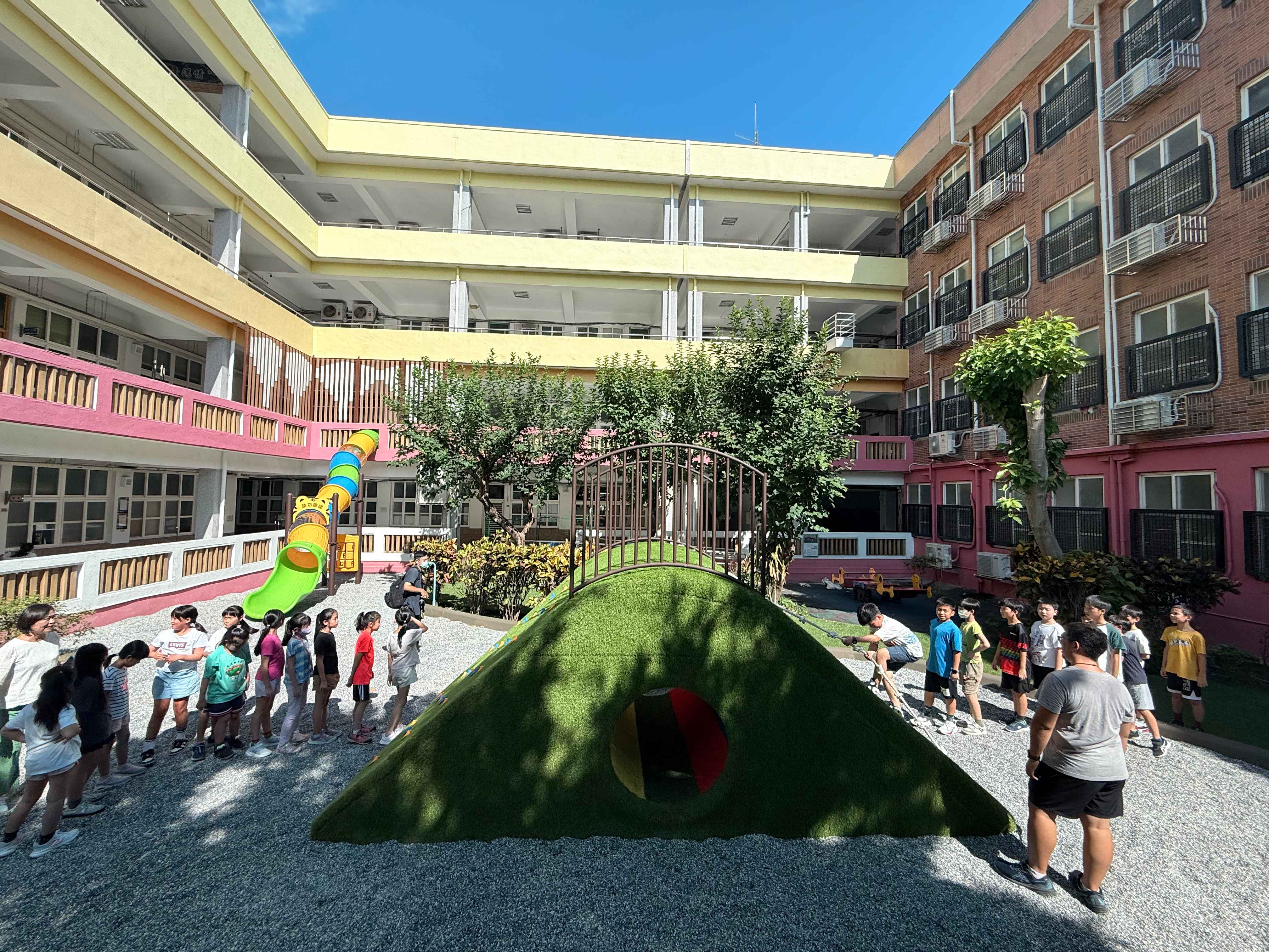 啟用儀式由教育局駐區督學、校長、教師會長、家長會長以及學生代表共同參與,見證這歷史性的一刻。啟用之後孩子們便如潮水般湧入期待已久的遊戲場,歡呼聲與笑語瞬間響徹雲霄,為這座承載著眾人期盼的樂園,注入了最真摯的生命力。然而,這份盡情的歡樂,是建立在紮實的安全基礎之上。為確保學童能安全地享受新設施,正式啟用前,堅持對全校每一班級完成扎實的安全教育宣導課程,詳細教導學生如何正確使用各項設施、尊重輪替的遊戲規則以及基本的自我保護方法。唯有在完成安全課程後,各班才得以正式進入這座夢想樂園,確保每一位孩子都能玩得開心,玩得安心。