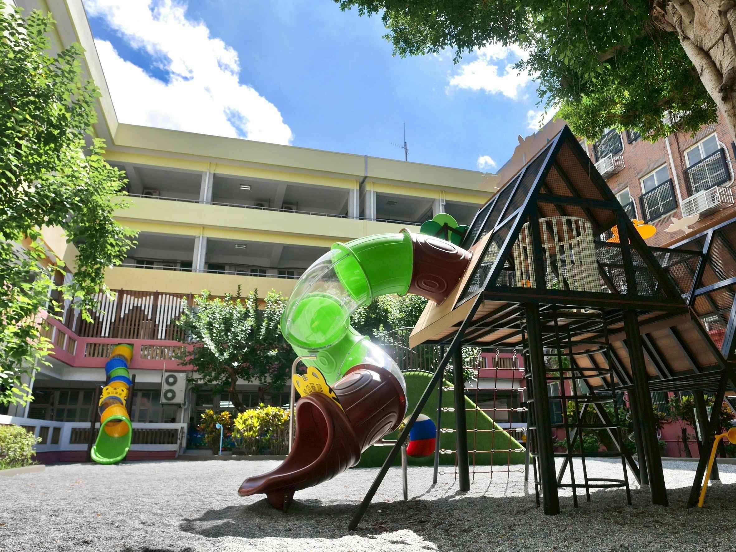 【臺北報導】這是一座由學生共同規畫,以圓角礫石為環保鋪面,有孩子最喜愛的盪鞦韆、兩層樓高的雲端滑梯和許多攀爬遊具,學校非常重視安全,花了一個月的時間對全校學生一一進行安全宣導,才啟用開放的新遊戲場。