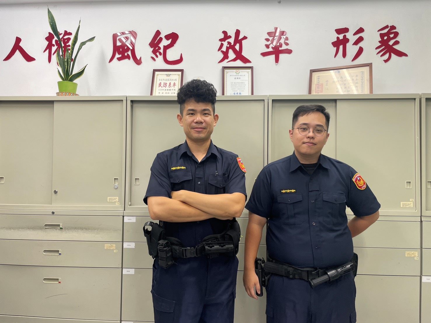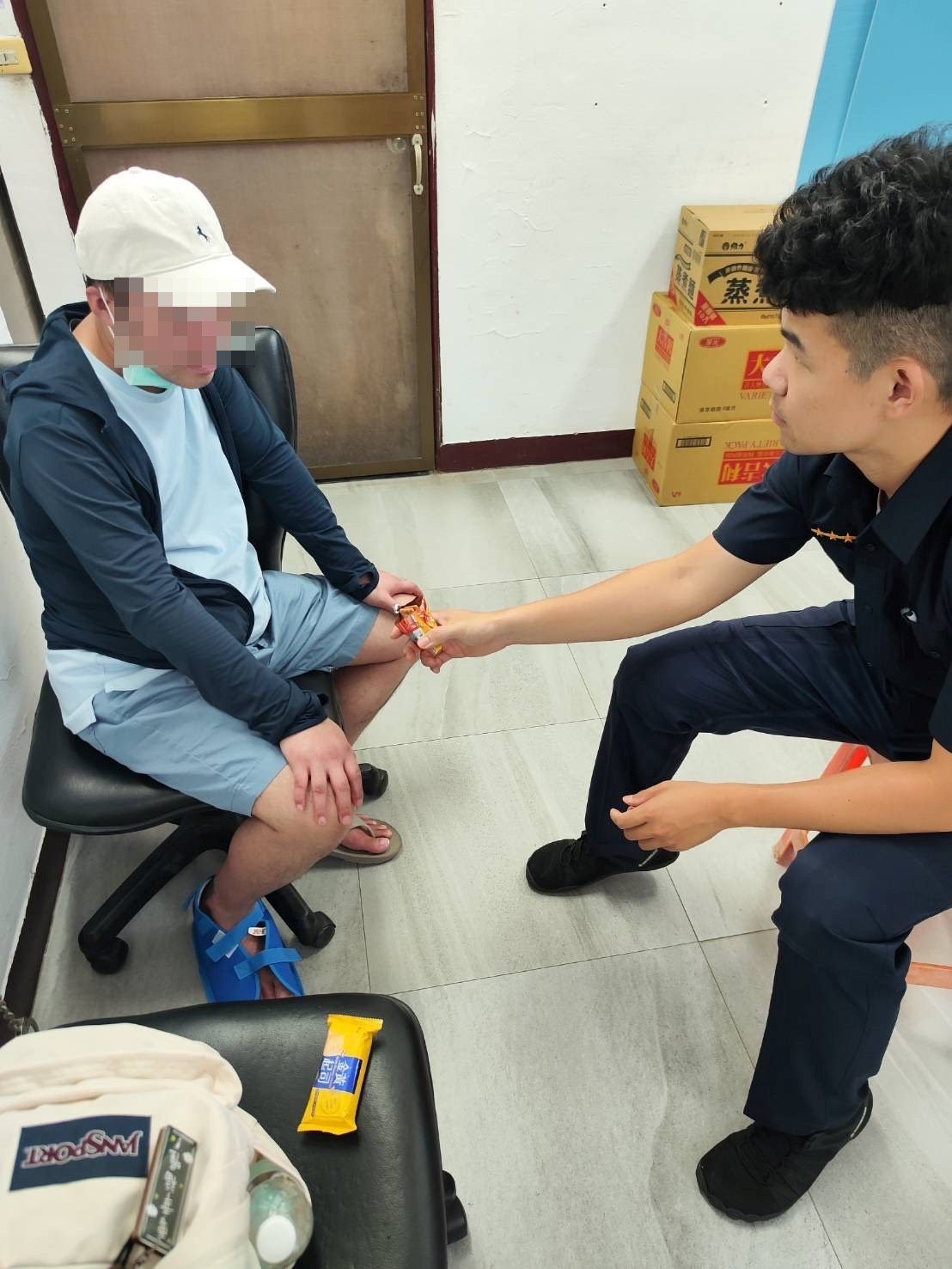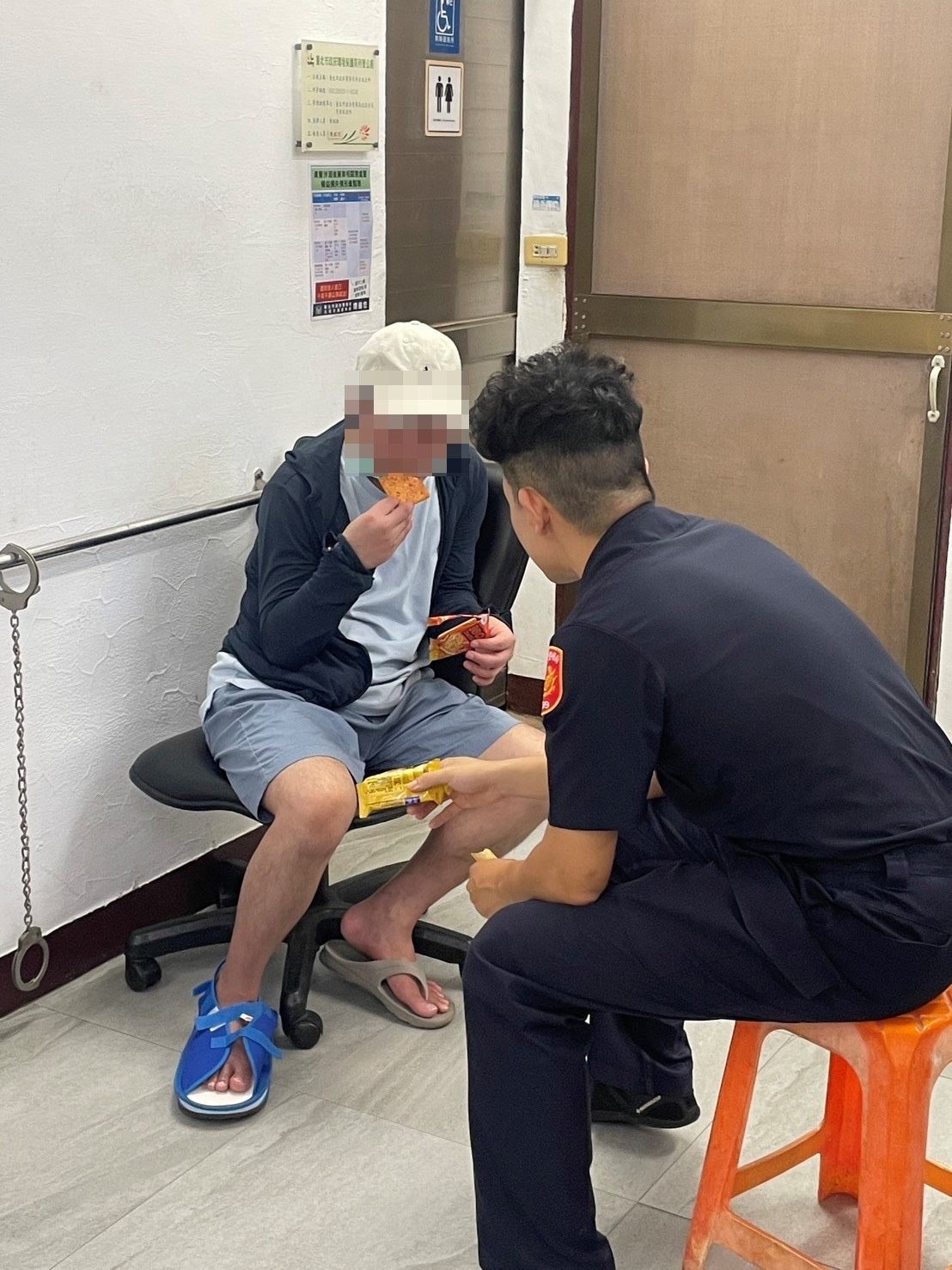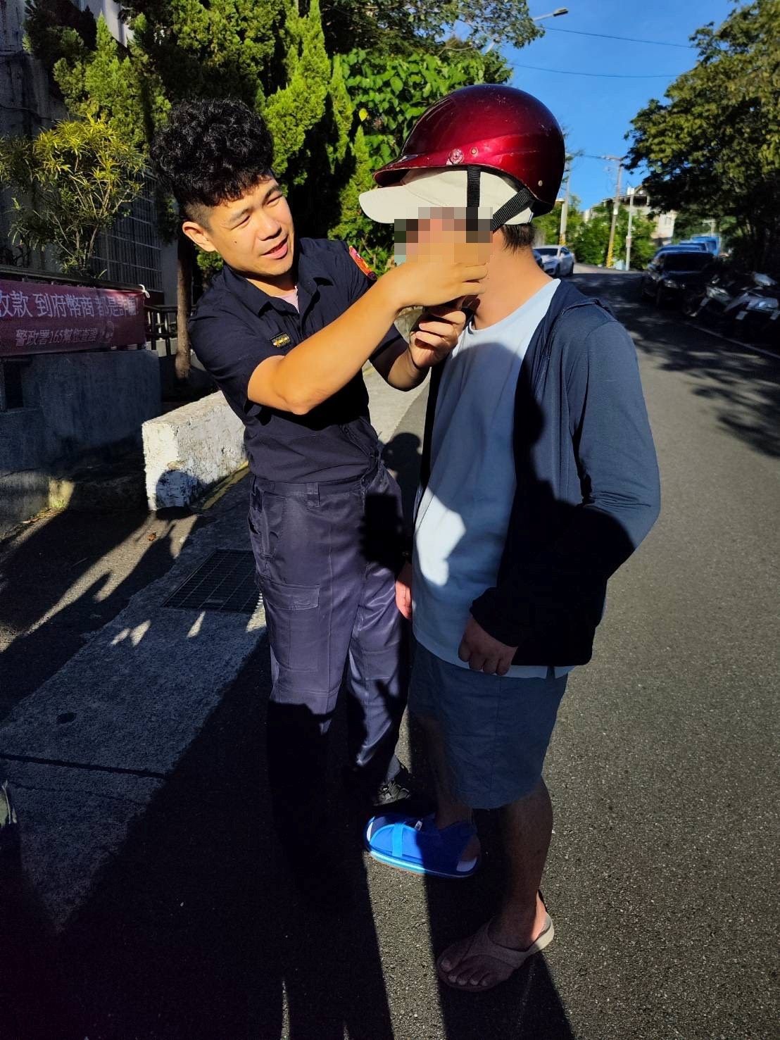 北投分局奇岩派出所警員林聰捷、張譽瀚日前16時許巡邏行經北投區三合街一段時,發現一名男子右腳打著石膏,全身不時顫抖,兩眼無神地坐在地上,且無法清楚說出自己的名字及年籍資料,經警方安撫後,帶返派出所安置,經以警政系統過濾多筆資料後,發現該男子姓蕭(38歲),為通報協尋的失蹤人口,因蕭男僅能以單字溝通,且會間歇性的顫抖大叫,警方像對待孩子般耐心安撫,提供點心;蕭男的雙胞胎哥哥接獲警方通知,立即趕到派出所,向警方表示,弟弟因有語言障礙,當日中午至臺北榮總就診後不慎走失,對於警方熱心積極的協助,感到十分讚賞。