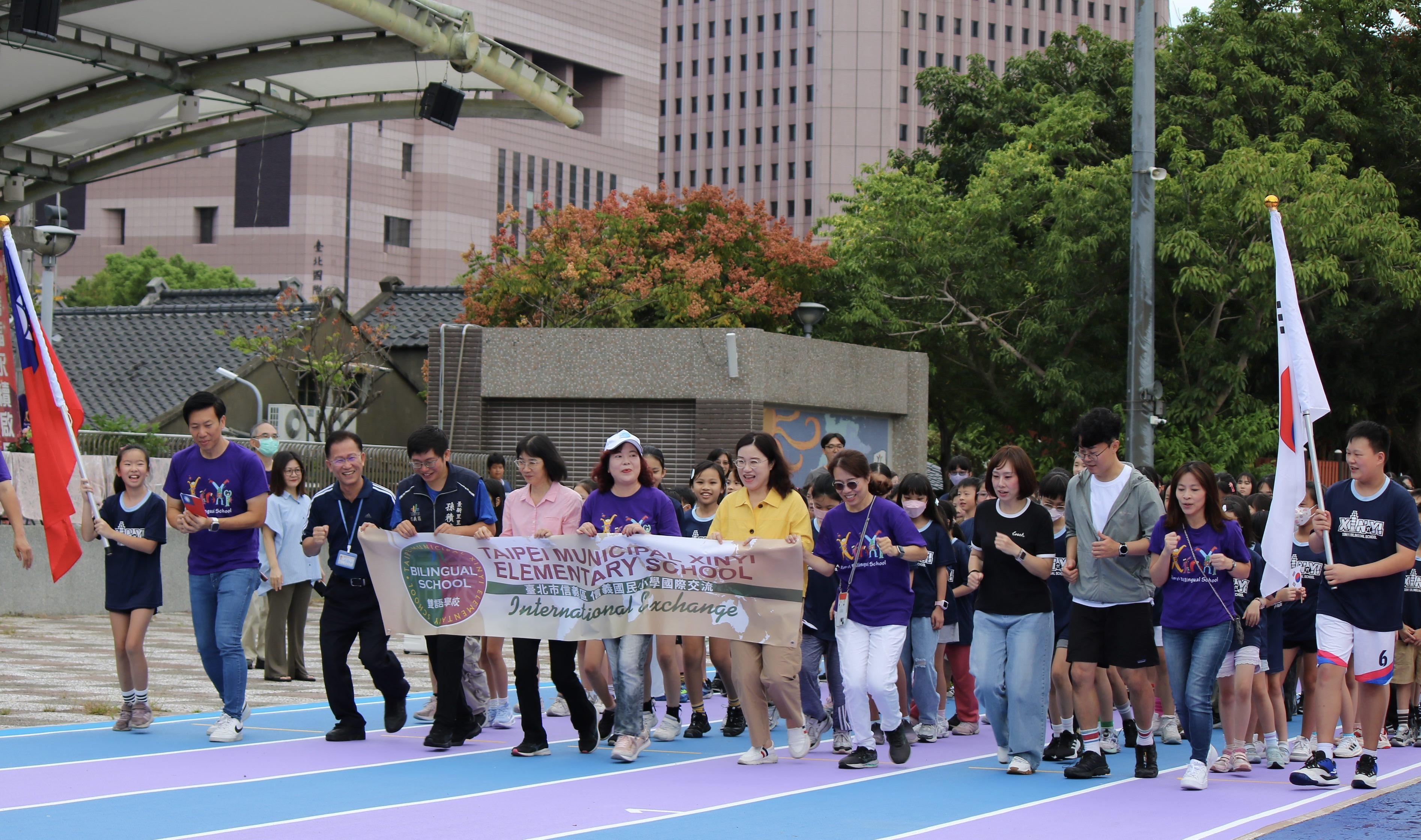 第二天的晨光時分,操場迎來嶄新跑道啟用典禮。信義國小以紫、藍相間的跑道設計,回應奧運「突破傳統、追求卓越」的精神,代表著信義國小的熱情、活力與創意。信義學生與韓國學伴肩並肩站上起跑線,在「友誼起跑」活動中傳遞象徵國際交流的友誼。當跑過終點線,全場掌聲雷動—象徵「文化交流奔向國際」的儀式,「信義的孩子,世界的孩子」,在國際交流的氛圍中,與世界接軌。
