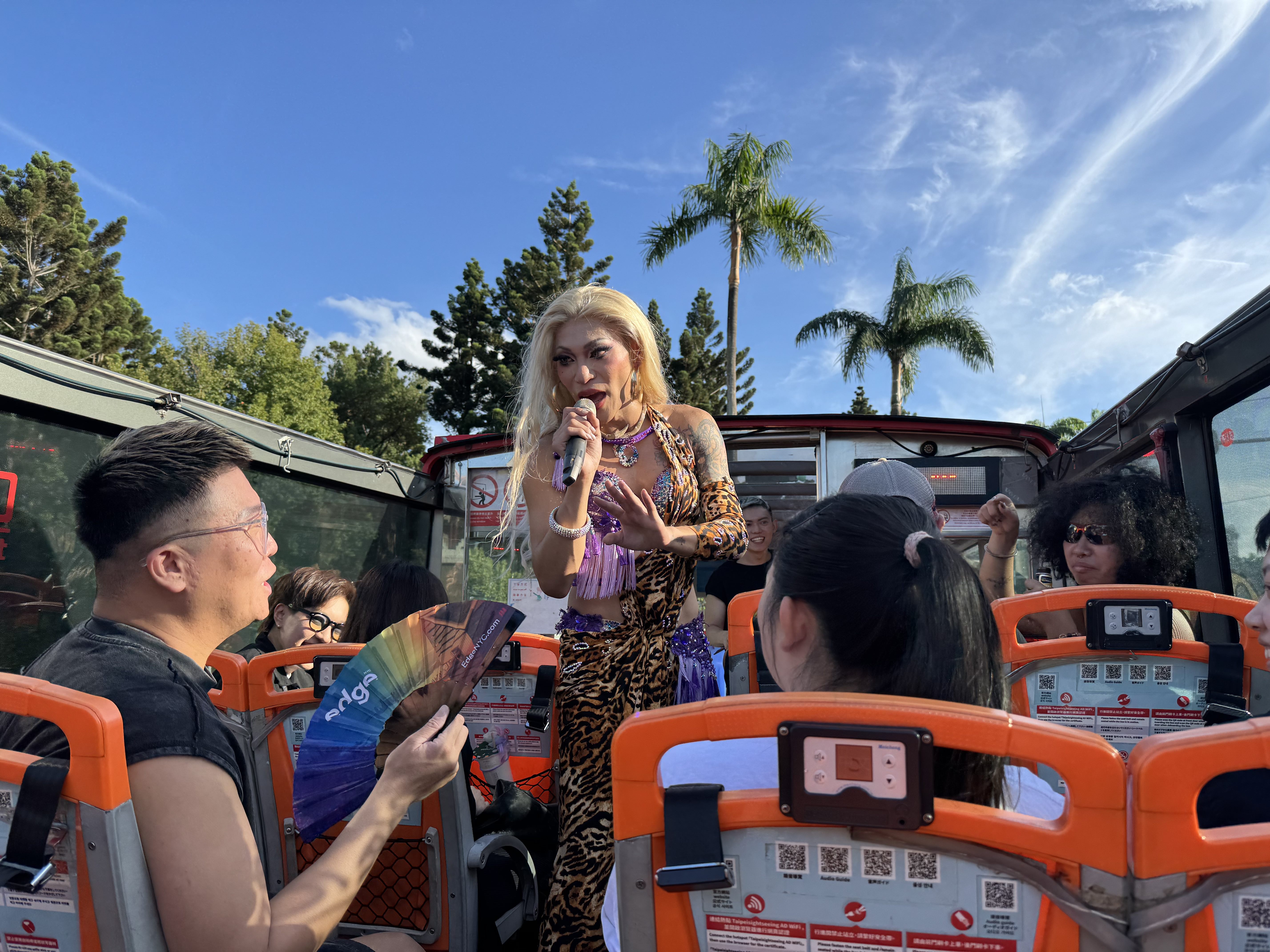 「彩虹觀光巴士」遊程中可與變裝皇后導覽員互動交流