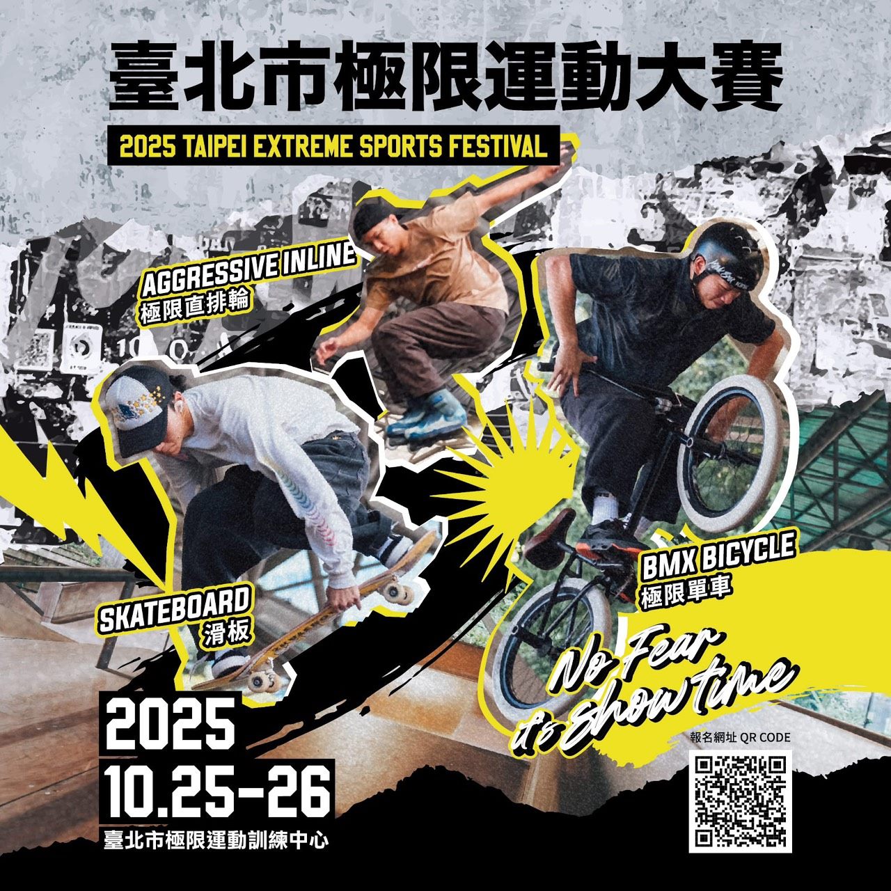 由臺北市政府體育局主辦、每年全國規模最大的極限運動盛會—「2025臺北市極限運動大賽」將於10月25日至26日,在臺北市極限運動訓練中心(WAYPOINT南港極限場)盛大登場!