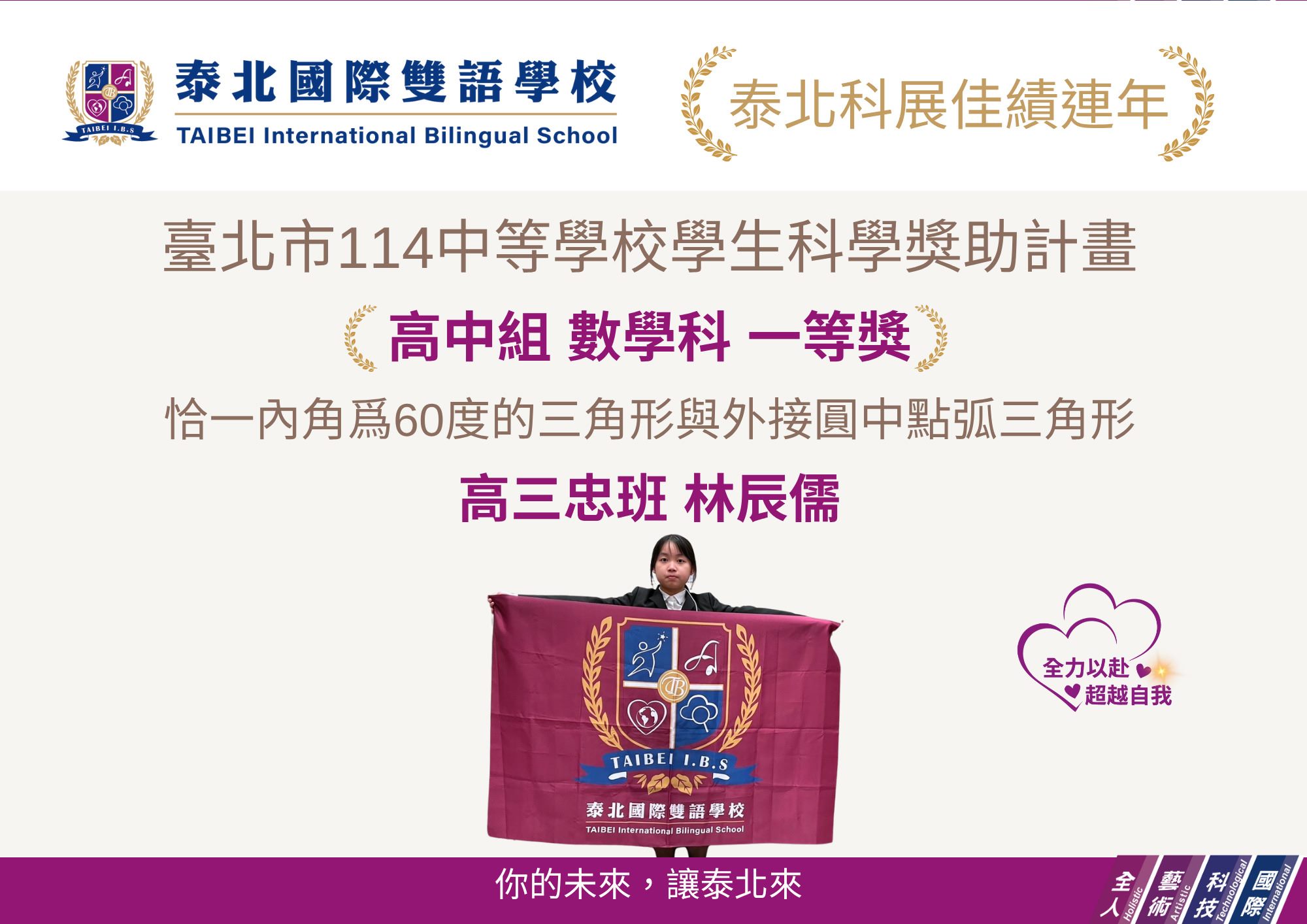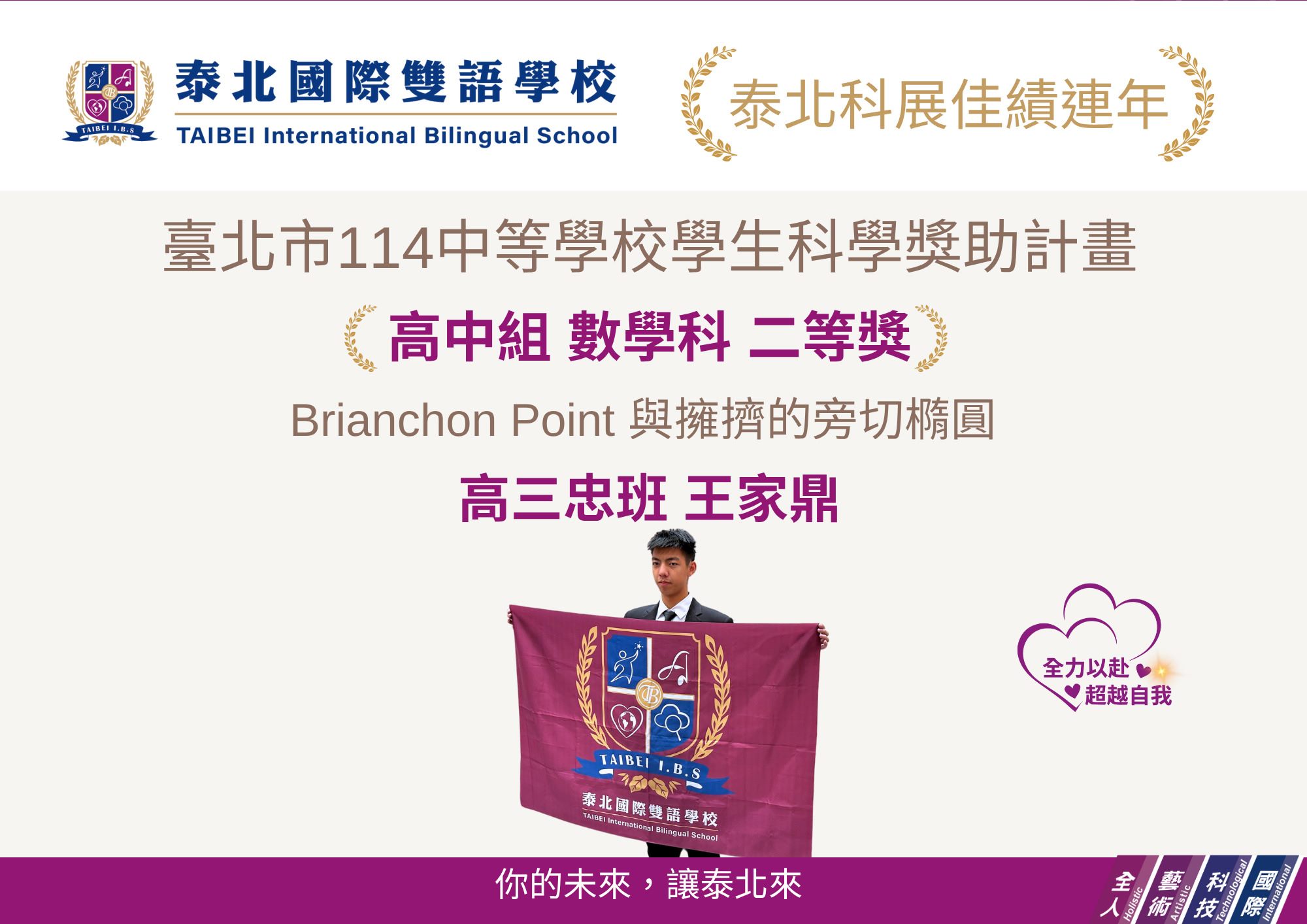 【臺北報導】臺北市114年度中等學校學生科學研究獎助計畫結果出爐,泰北國際雙語學校表現亮眼,初審通過四件作品,最終全部榮獲前三名殊榮。其中三件來自數學領域、一件屬於物理領域,充分展現學生在理論推理與實驗應用上的雙重實力,彰顯泰北國際雙語學校深耕科學教育的成果。