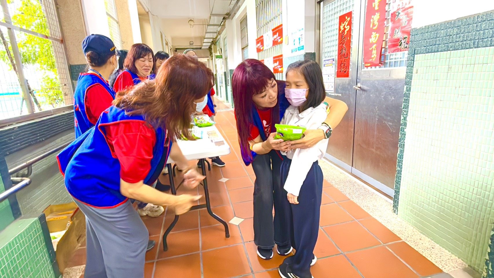 學校特別準備了「勇敢接種‧幸福成長」卡片,由校長張鍾榮及家長會長黃美綾親自贈予每位東園寶貝,傳遞溫暖祝福與鼓勵。黃美綾會長表示,這些卡片由家長委員們在光復節三天假期期間共同設計與後製,兼具衛生教育意義與情緒價值,更可作為書籤留念。除此之外,每一包「乖乖」禮物,也由家長委員親筆寫上孩子的班級與姓名,象徵「平安乖乖、健康長大」。這份貼心的心意,讓原本略帶緊張的接種現場,化為充滿笑容與感動的溫馨時刻。