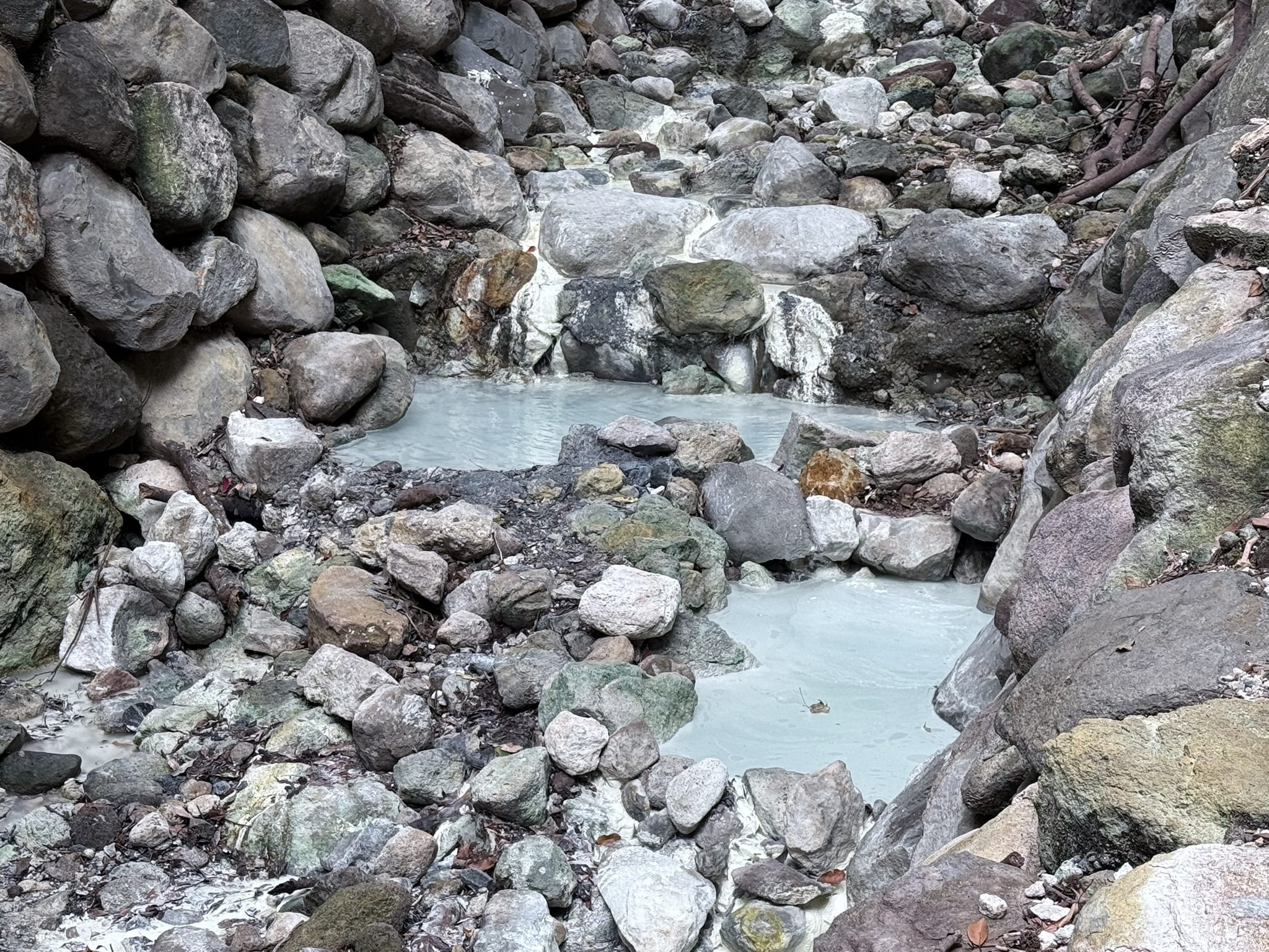 紫明溪步道鋪面採用回收木屑舖設。柔軟的木屑路徑不僅讓雙腳走來舒適防滑,也融入自然環境,成為動植物友善的生長空間。沿著溪畔緩緩前行,偶爾傳來陣陣硫磺氣息──那是溪谷裡天然溫泉的氣息,為旅程添上一份獨有的記憶。為了守護這片山林,步道沿線採用乾砌塊石代替水泥來穩定土坡、減少沖蝕,也留下更多空間給溪流與生態,讓自然以自己的節奏生長。