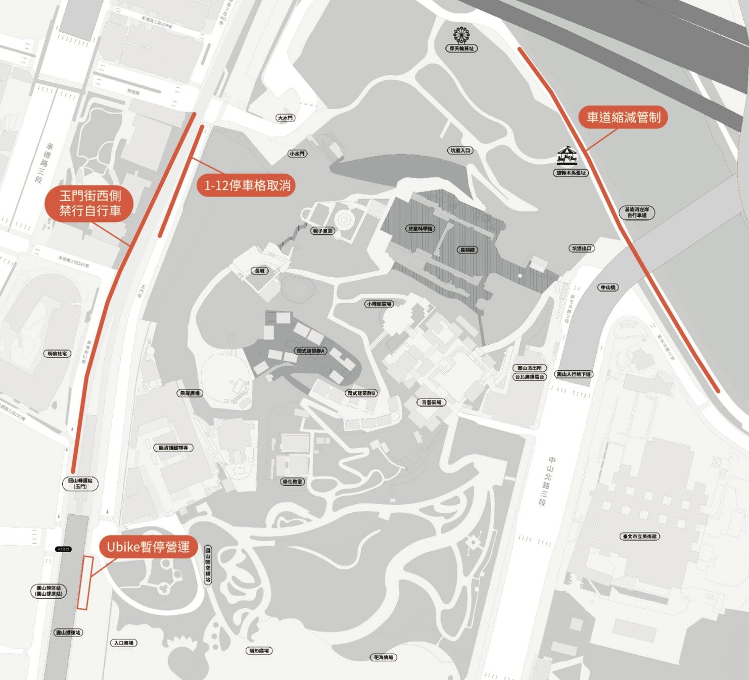 可於「圓山轉運站(玉門)」、「圓山轉運站(捷運圓山站)」、「花博公園」、「臺北市立美術館」等站下車後步行至活動現場。