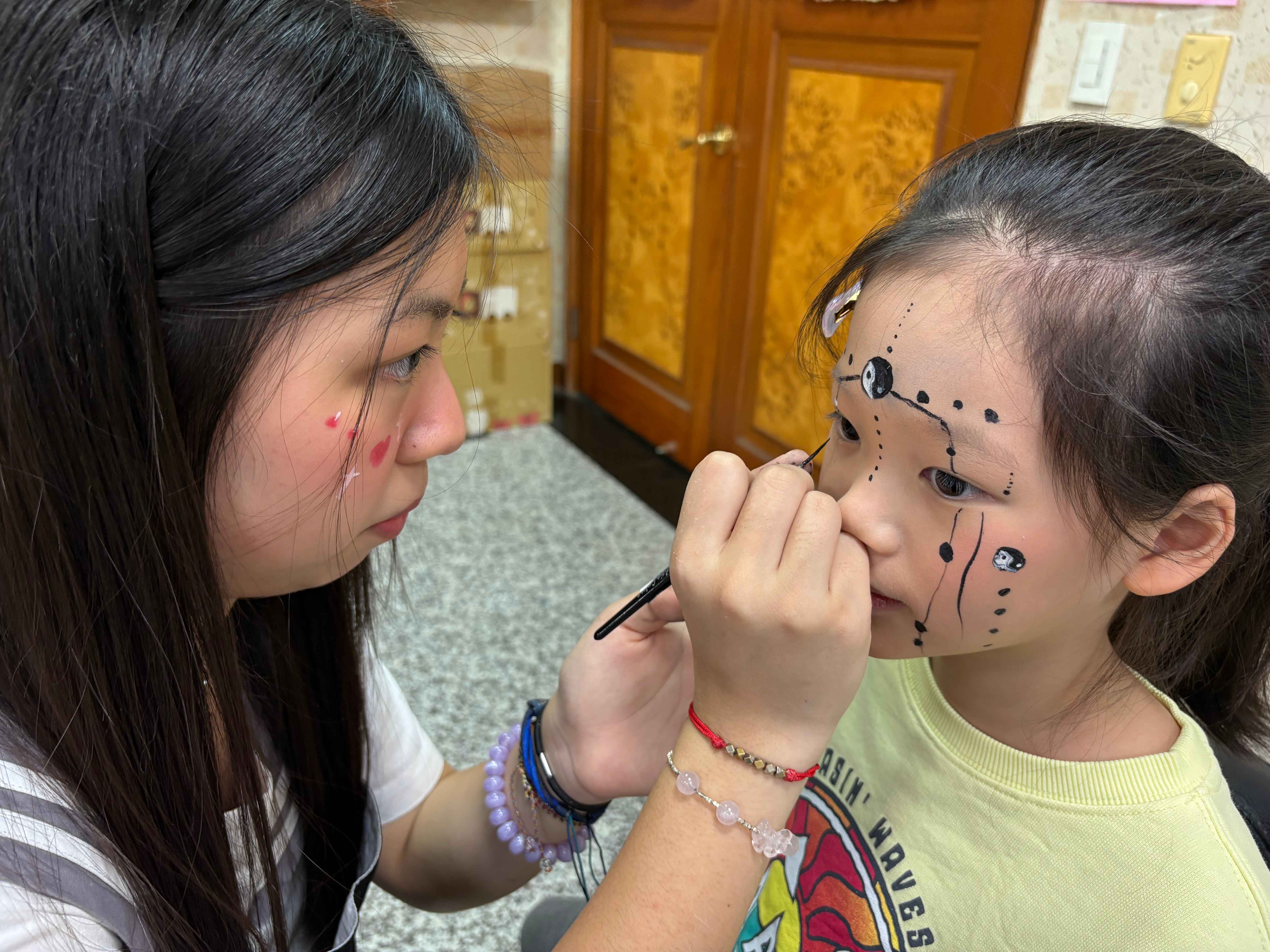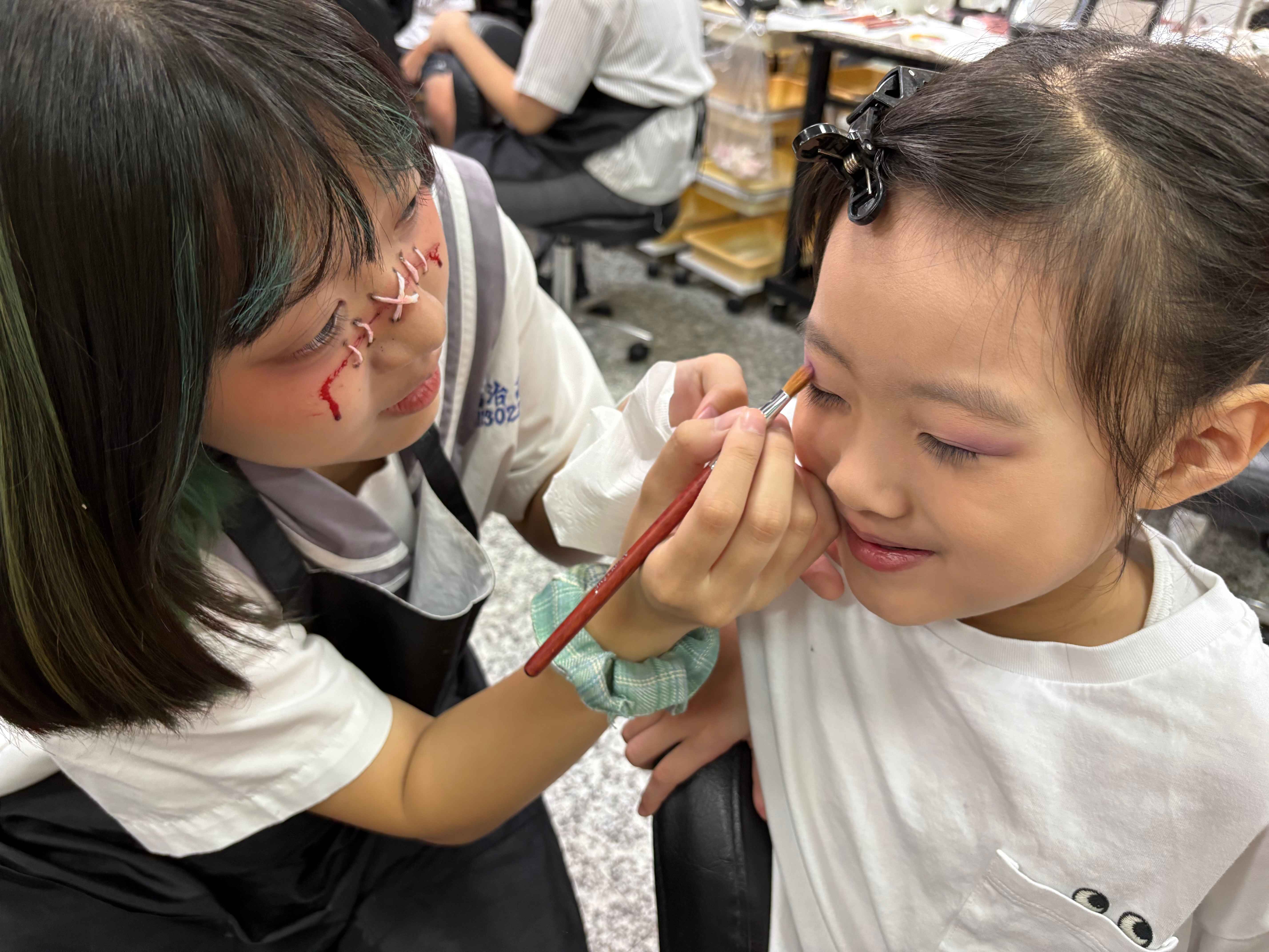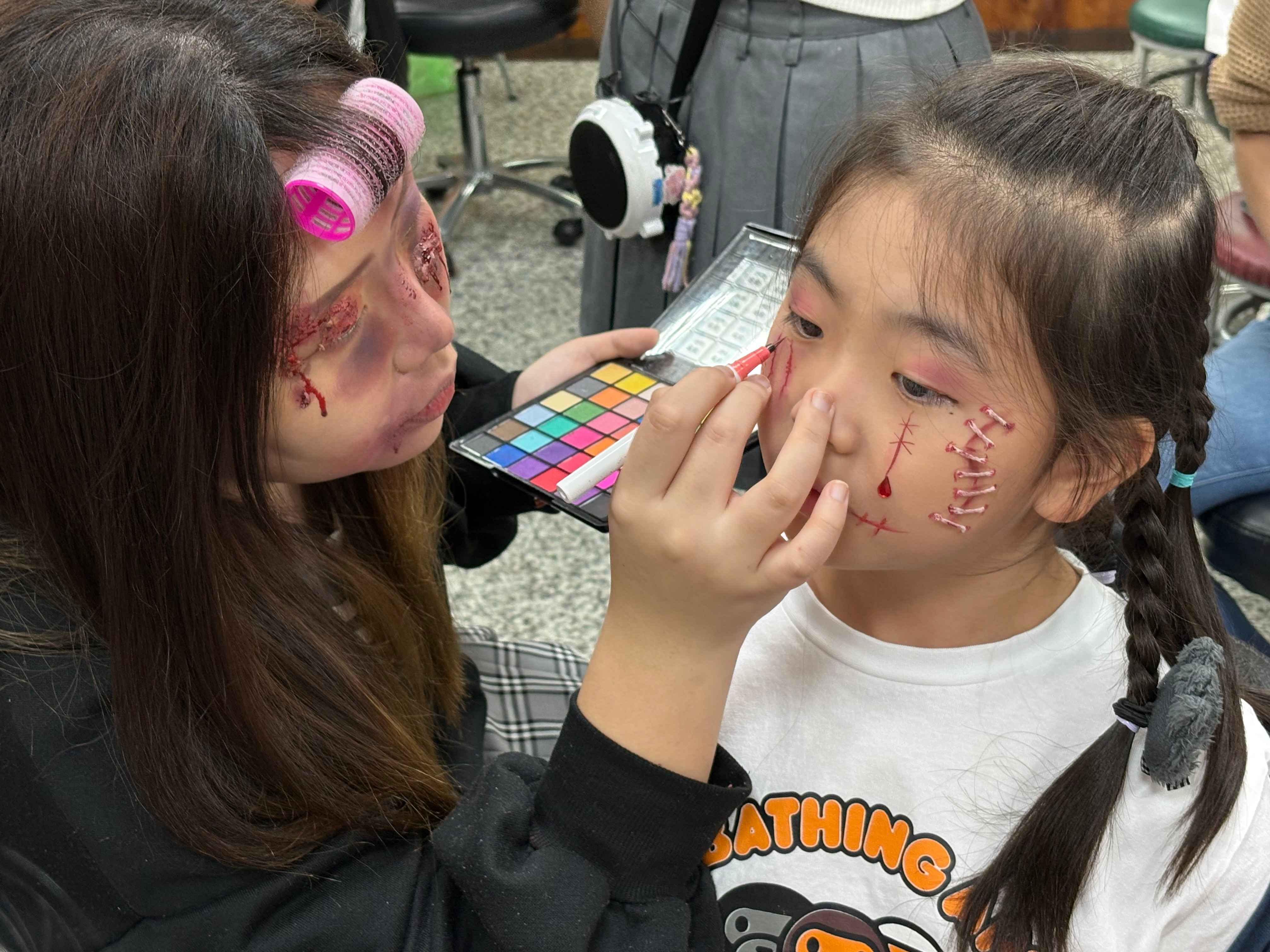 今年喬治高職時尚造型科應【黑羊】實驗教育邀請,為實驗教育孩子們萬聖節彩妝設計,溝通圖稿過程,真有意思啊! 造型完成,孩子們爭相跟本校創辦人及校長Trick or Treat,畫面可愛至極!