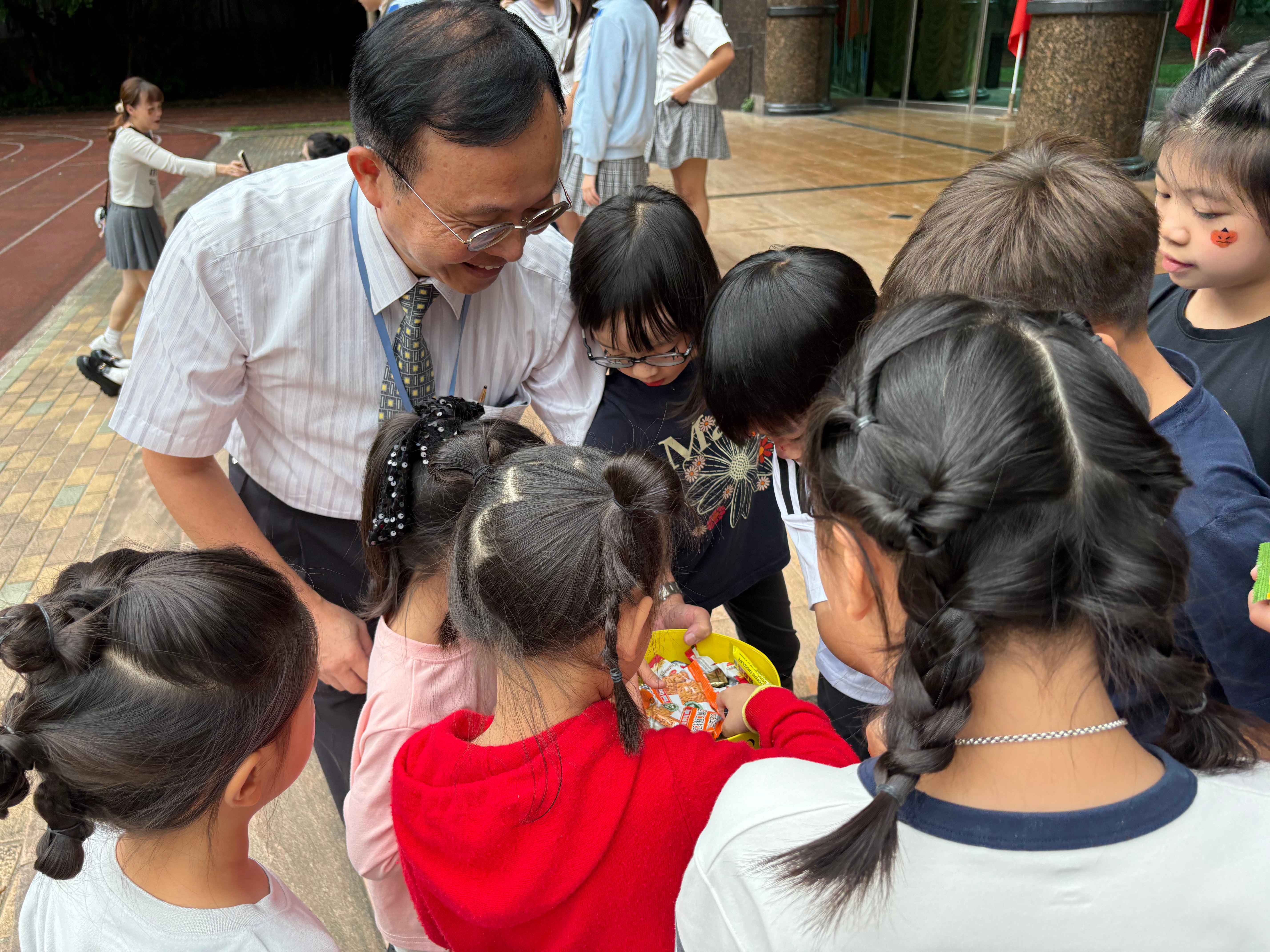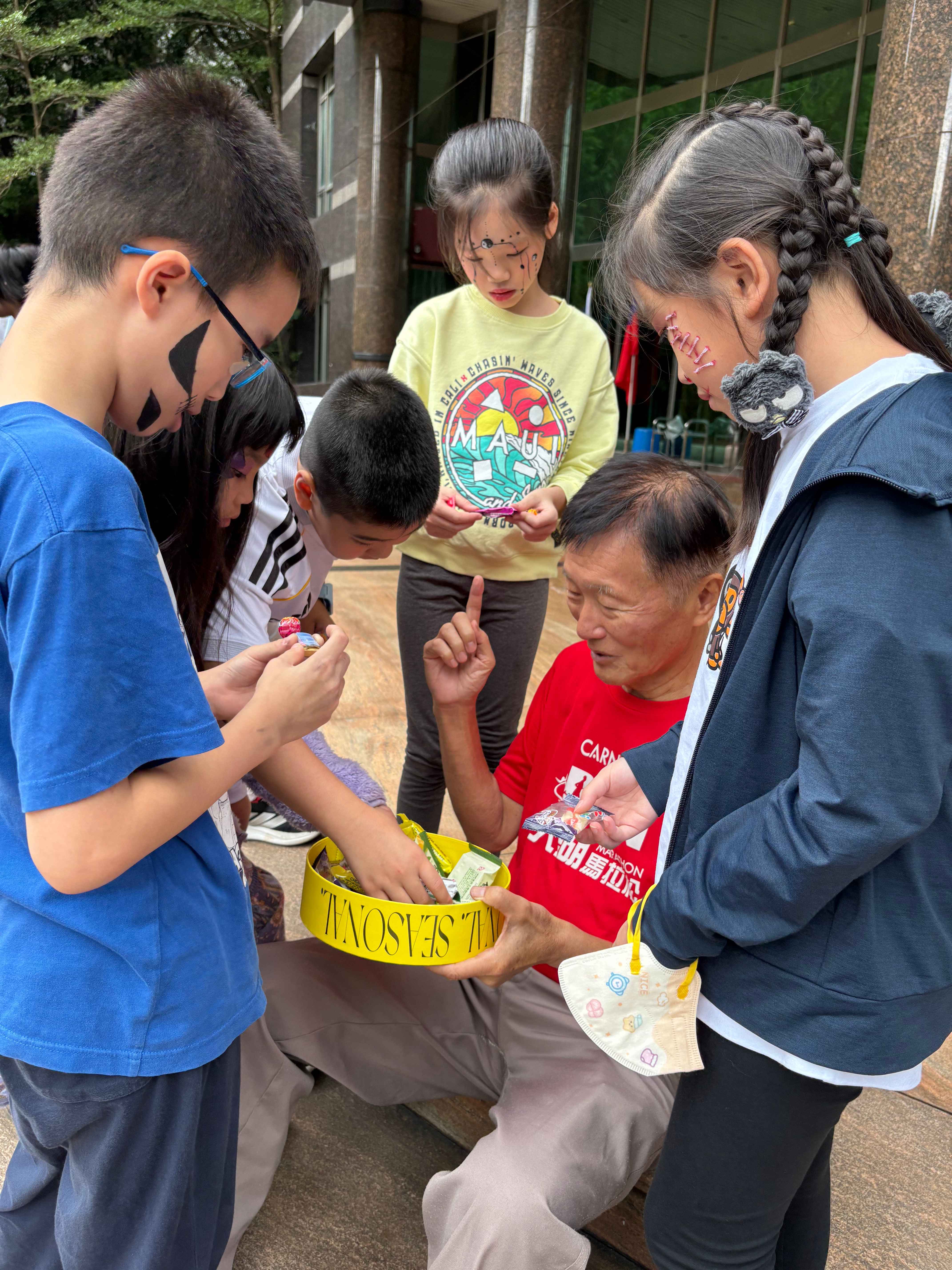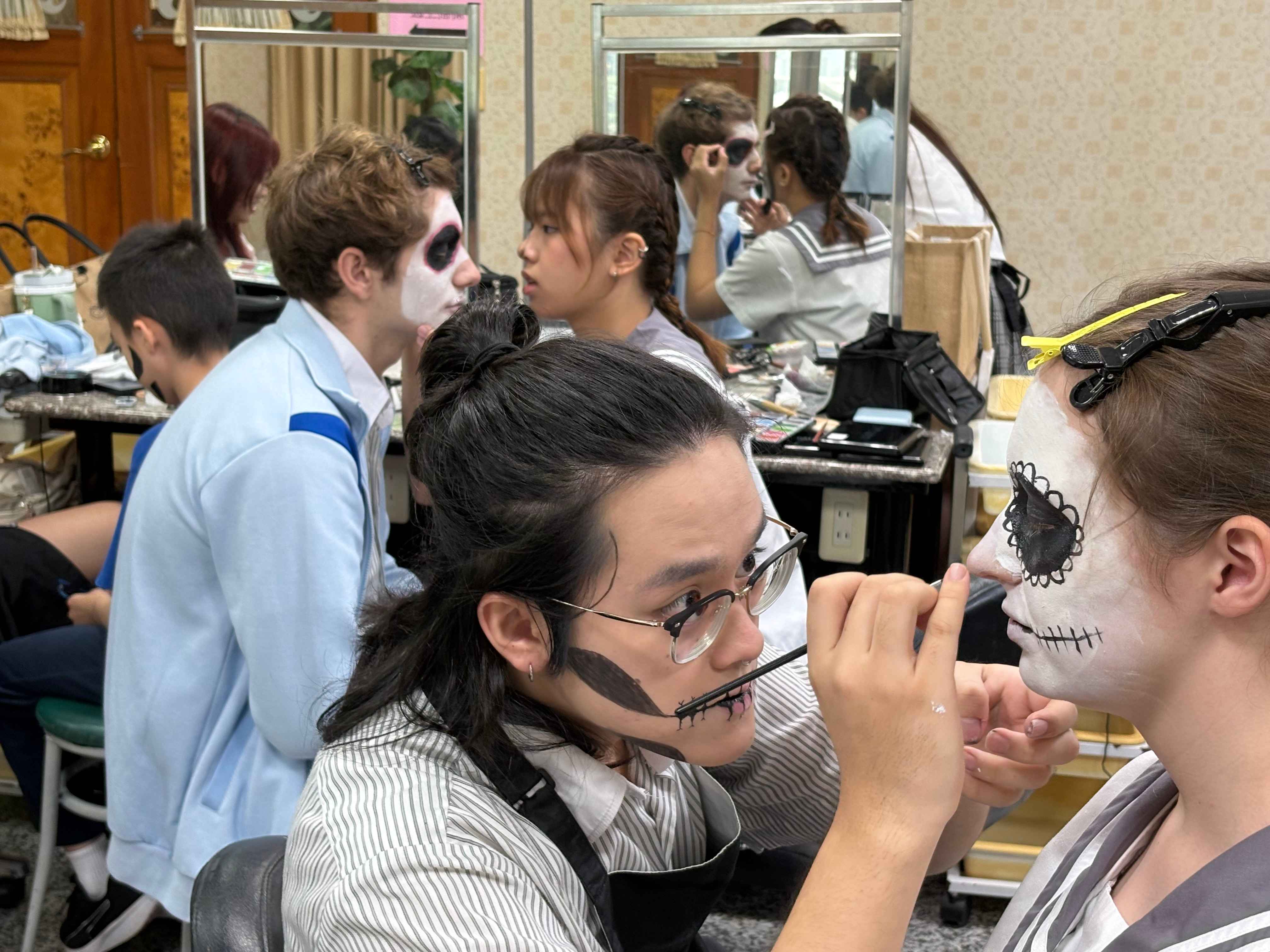本校三位交換學生也參加了此次萬聖節妝彩創意課,對這三位來自歐洲(德國、西班牙及義大利)的交換生,萬聖節、聖誕節等節日,都在很早前就全鎮全市一起動起來,在喬治他們非常開心能有萬聖節活動氛圍…