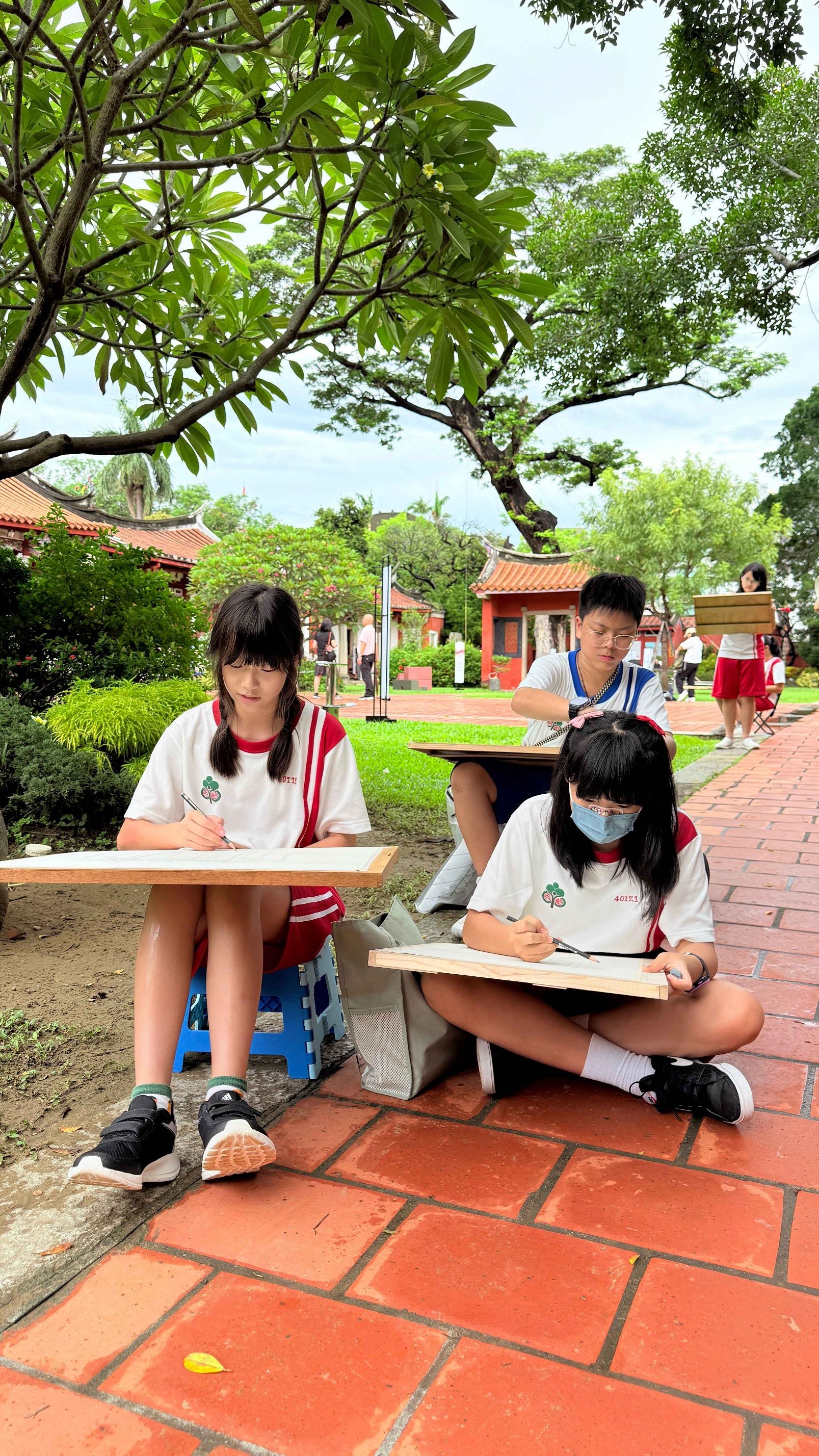 今年百齡美術班校外寫生地點選在臺南地區,包括奇美博物館、孔廟、文學館、赤崁樓、武廟、延平郡王祠、安平樹屋及成功大學城垣砲台等景點。學生們背負畫具、奔走創作,在時間與環境的挑戰中揮灑熱情,透過賞析與交流汲取經驗,體會創作的喜悅與成就。