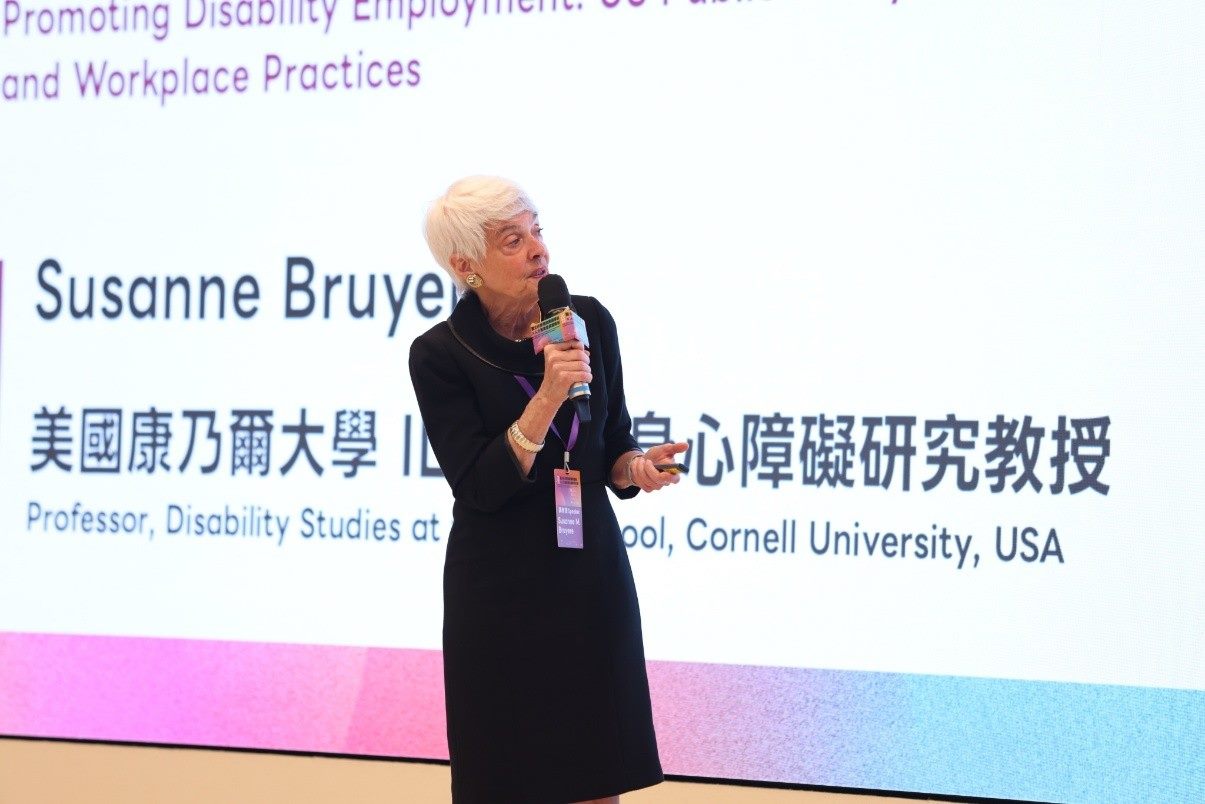 論壇第二日,聚焦在「企業促進多元共融的人力資源策略與經驗」主題,由美國伊利諾大學厄巴納香檳分校助理教授Chang-kyu Kwon主講,強調真正的包容文化在於讓員工無需掩飾自身特質或身分,能安心展現真實自我,這樣的環境才能激發創新與持續成長。美國馬里蘭大學研究型教授Kelly Nye-Lengerman分享,聘用身心障礙者不僅是企業社會責任,更能帶來創新與經濟效益,她指出,身心障礙人才是龐大而未被充分利用的勞動力資源,透過包容性招聘與合理調整,企業可同時強化競爭力與品牌形象,實踐真正的永續發展。