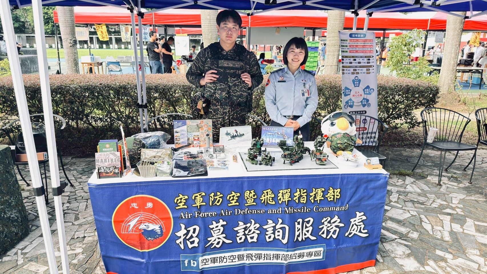 特展會場由臺北市後備指揮部協助統合三軍單位,並由國防部北部地區人才招募中心規劃,設置10個全民國防暨人才招募宣導攤位,透過熱情活力的國軍娃娃拉近與學生距離,再由各軍種招募員針對國軍招募政策暨職涯規劃等資訊向學生說明,參訪學子均獲益良多,此外,國防部資通電軍指揮部安排訓練型、偵搜型無人機裝備展示,陸軍特種作戰指揮部透過傘具介紹與背負體驗,及國防部憲兵指揮部規劃T91步槍及紅隼火箭彈雷指器射擊體驗活動,增進軍民互動,深化青年學子國防教育知識,了解國家安全重要性,進而關注、支持全民國防,提升愛國情操,更進一步鼓勵學子落實全民防衛動員,實踐保衛家園目標。