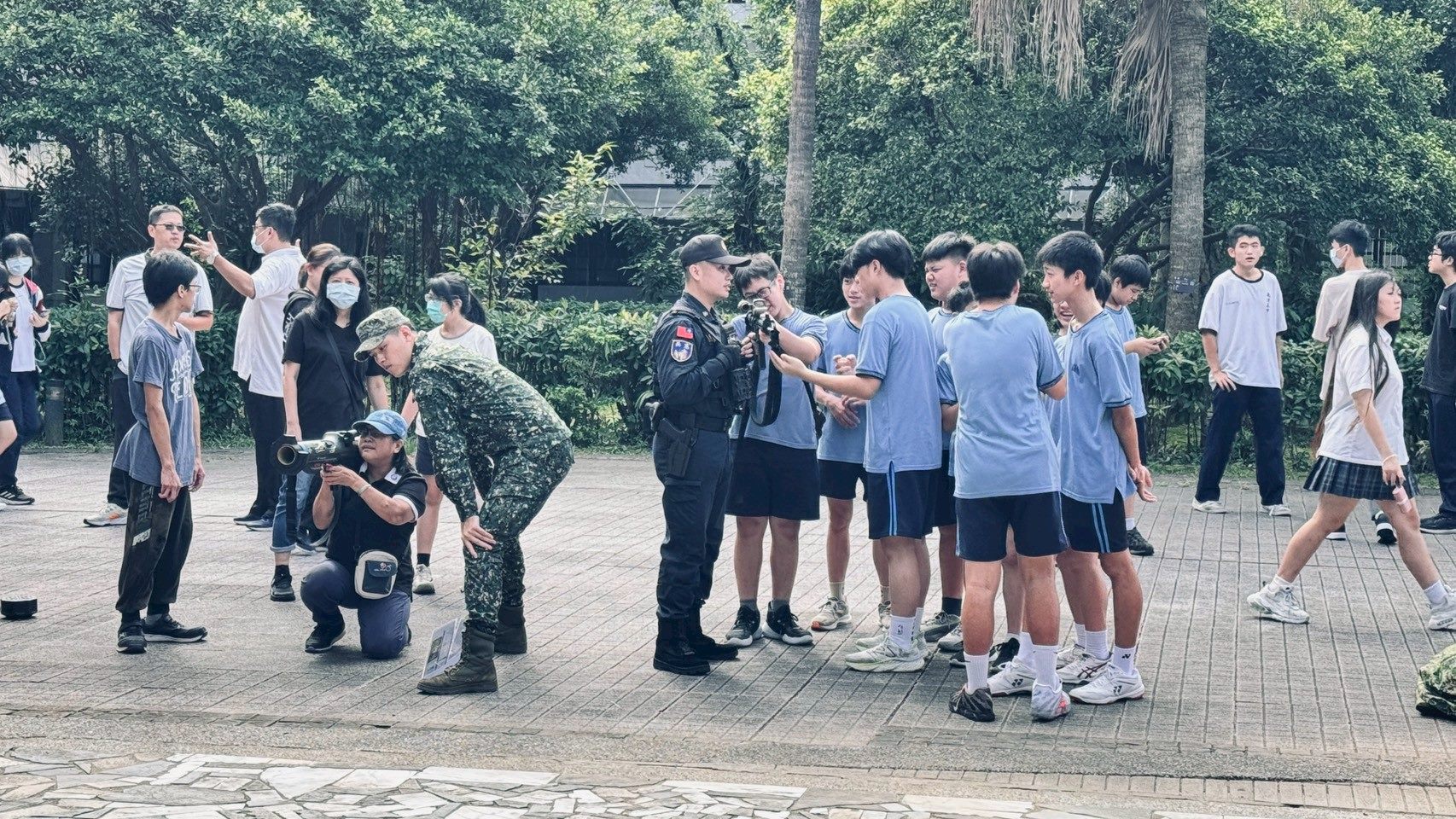 【臺北報導】為推展全民國防教育,落實全民防衛動員理念,臺北市立南港高中日前配合57週年校慶「五育卓越七彩飛揚」主題活動,邀請國軍單位辦理全民國防教育特展,除國軍人才招募設攤宣導外,並設有各軍種個裝及無人機陳展區,由專人實施介紹,同時進行T10B傘包背負、T91步槍及紅隼火箭彈雷指器射擊及國軍娃娃互動等體驗,讓學生及參與的師長與貴賓們了解國防相關知識,感受國軍保家衛國的責任與必要性,更體悟國軍戰訓及衛國之辛勞。