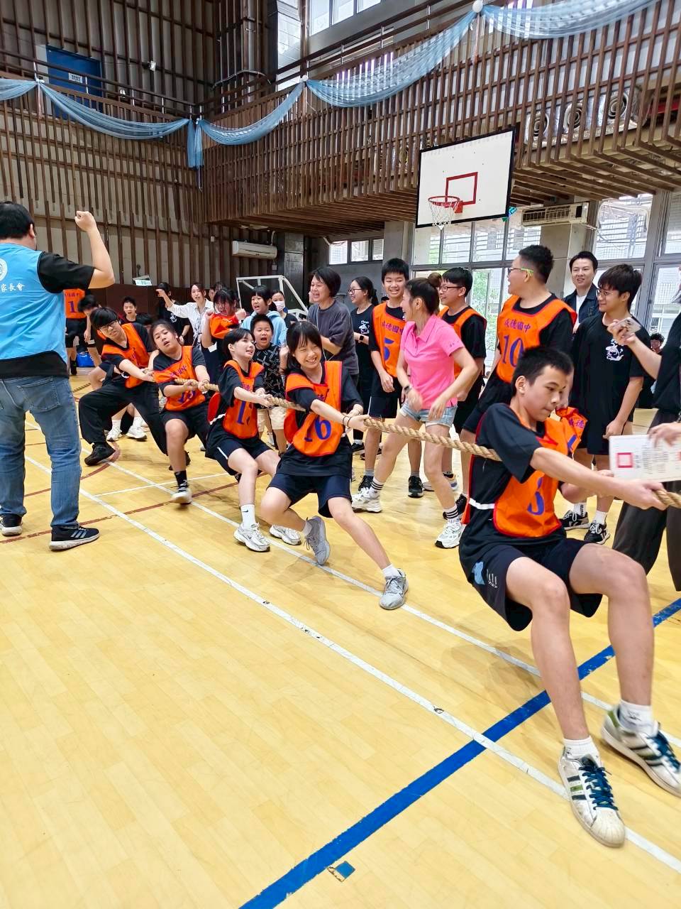雖然今年主軸為園遊會活動,但仍安排了拔河、大隊接力等團體競賽項目。學生們在賽場上奮力拼搏、齊心協力,不僅展現運動競技精神,更體現合作、團結與班級凝聚力。校長謝扶成最後表示,三十五周年校慶不僅是回顧的時刻,更象徵著邁向未來的新起點。未來,成德國中將持續以愛為根、以德為本,深化學生的多元學習與品格教育,攜手師生、家長與社區,共同譜寫成德下一章更加燦爛的教育新篇章。