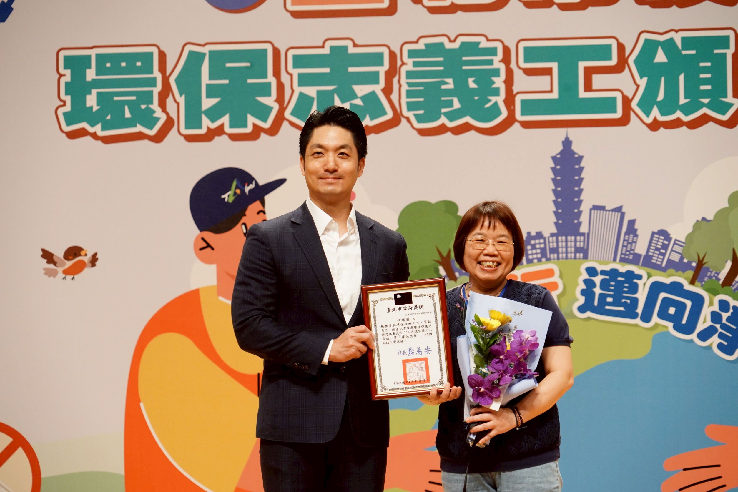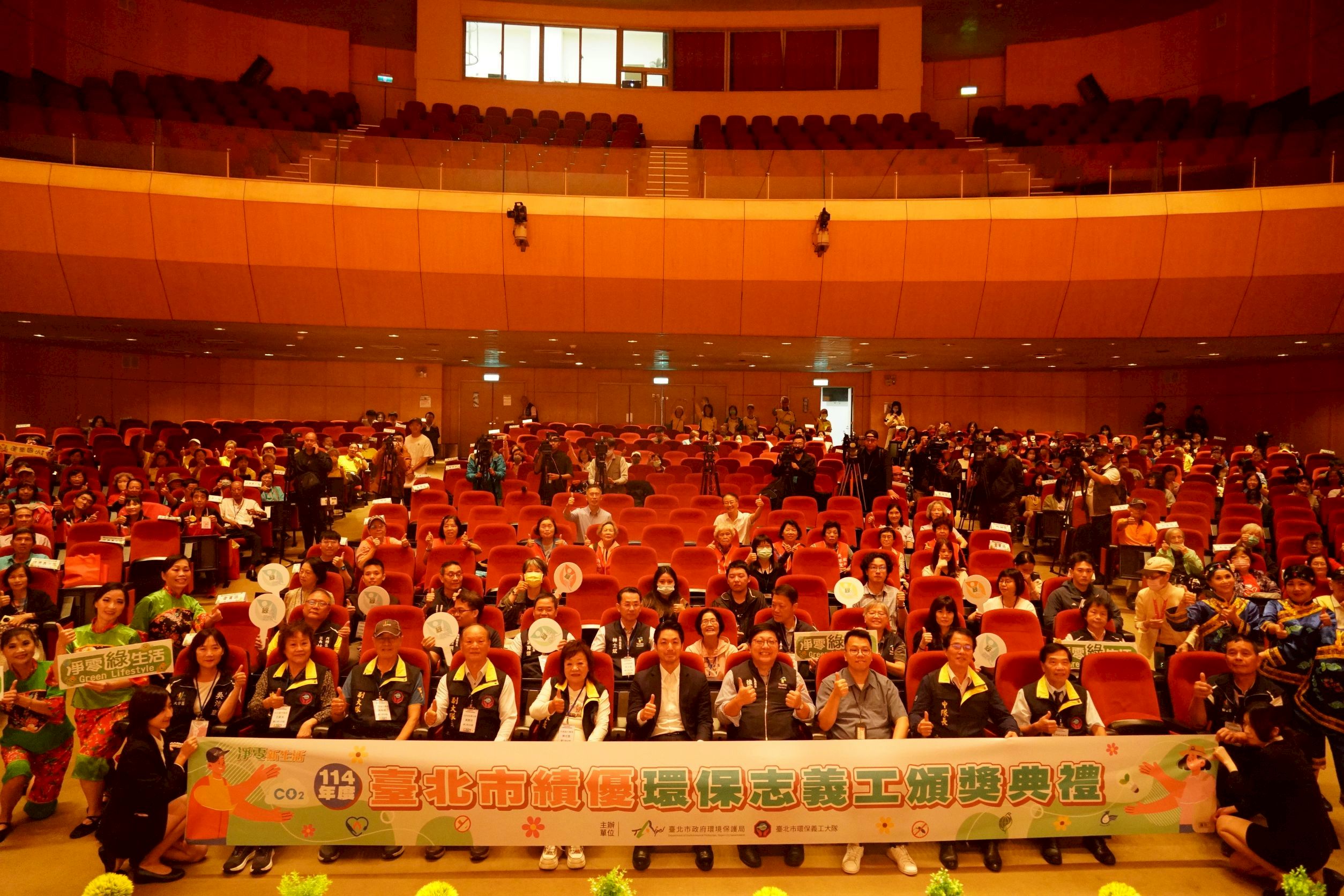 臺北市環保局今(12)日舉辦年度環保志義工頒獎典禮,表彰在環境保護工作中表現優異的義工團隊與個人。臺北市長蔣萬安親自出席感謝所有志義工長期以來為臺北市這座城市的整潔、乾淨與環保付出的心力,強調臺北市的環保成就已贏得國際的讚譽。