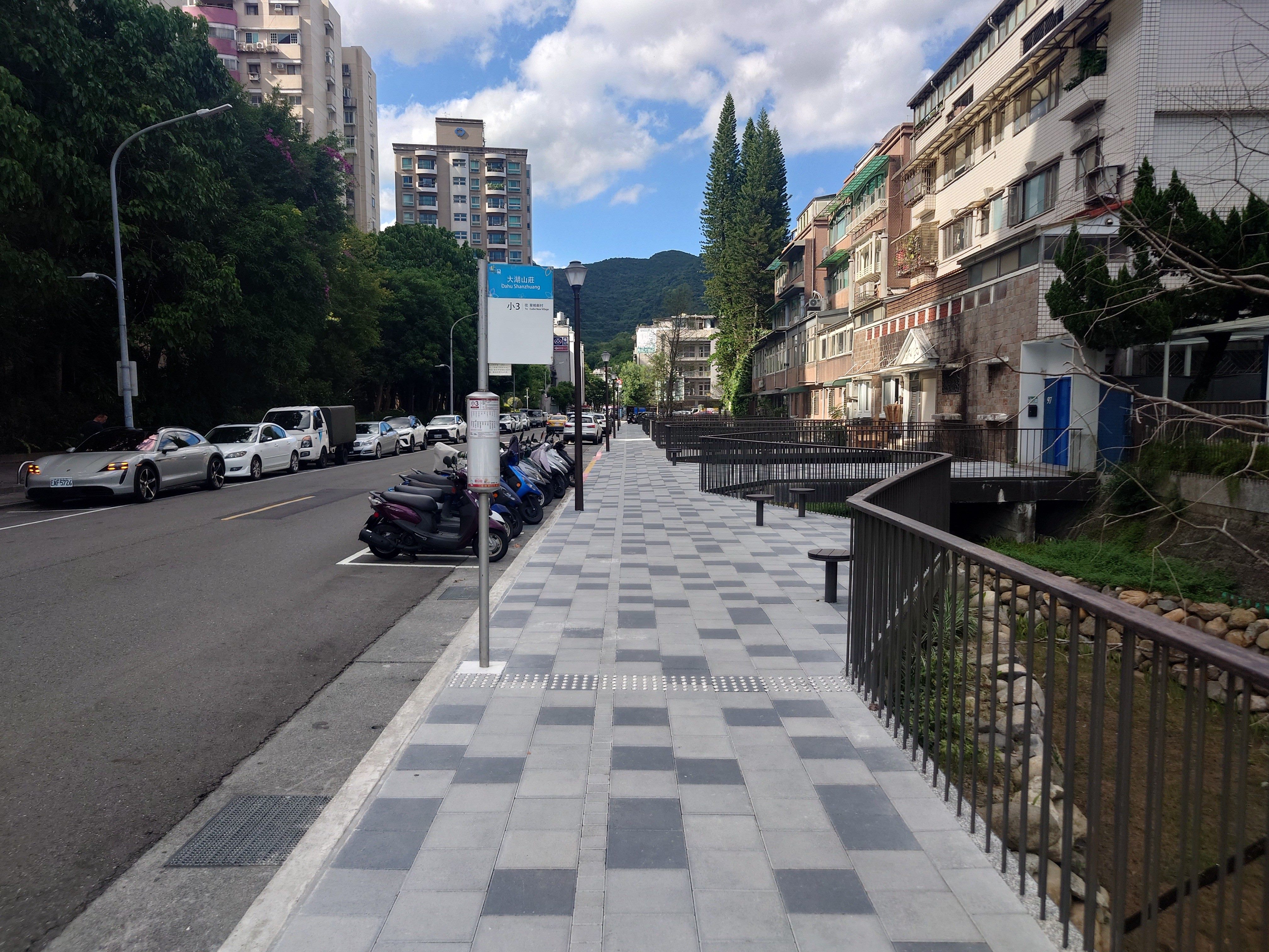 從捷運大湖公園站1號出口出來後,右轉沿著大湖山莊街走,這裡不僅是台北大縱走第四段的起點,也是通往大溝溪生態治水園區與白石湖山系的必經路線。拓寬後的人行通道帶來更安全與舒適的步行體驗,沿途可欣賞砌石園景與多層次植栽,為散步旅程增添視覺驚喜!