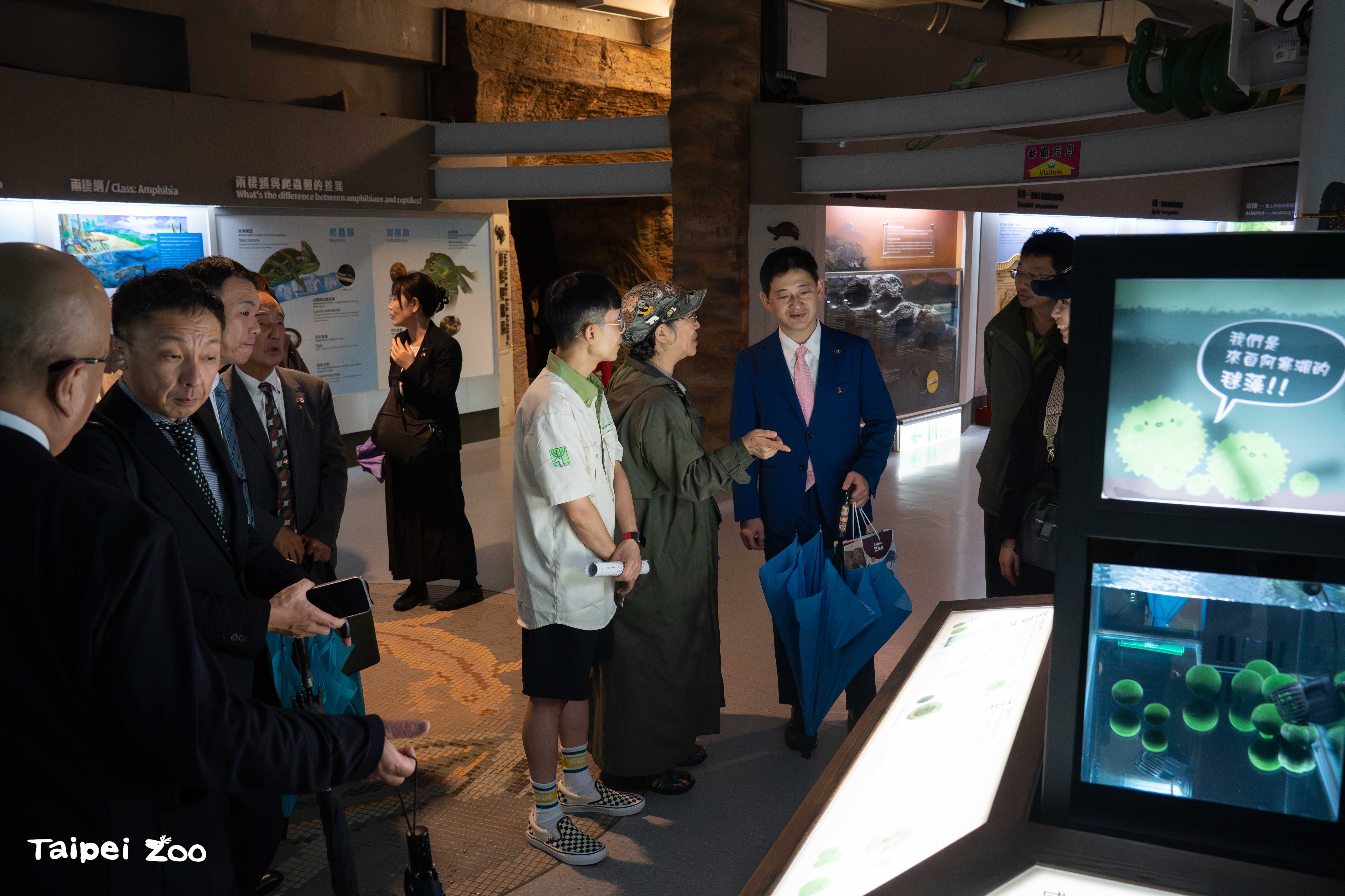 2025年11月11日釧路市鶴間秀典市長、釧路市議會畑中優周議長特別率團來臺北市立動物園拜訪,也前往探望丹頂鶴與觀察毬藻的現況,期望臺北與釧路兩個城市、兩間動物園共同延續臺日保育合作的永續情誼。日本北海道釧路市自2010年慷慨承諾贈送一對丹頂鶴給臺北市立動物園,開啟了以丹頂鶴保育為題的野生動物保育與教育合作緣分。2011年9月丹頂鶴「Big」和「Kika」來到臺北,2017年釧路市再將日本「特別天然記念物」的阿寒湖毬藻贈予臺北市立動物園,期間雙方不斷密切聯繫,共同研究與檢測相關照養技術。2018年釧路市更送來4顆超大型天然毬藻,創下日本首度透過保育展示合作計畫,輸出直徑超過10公分的天然毬藻到國外的案例。