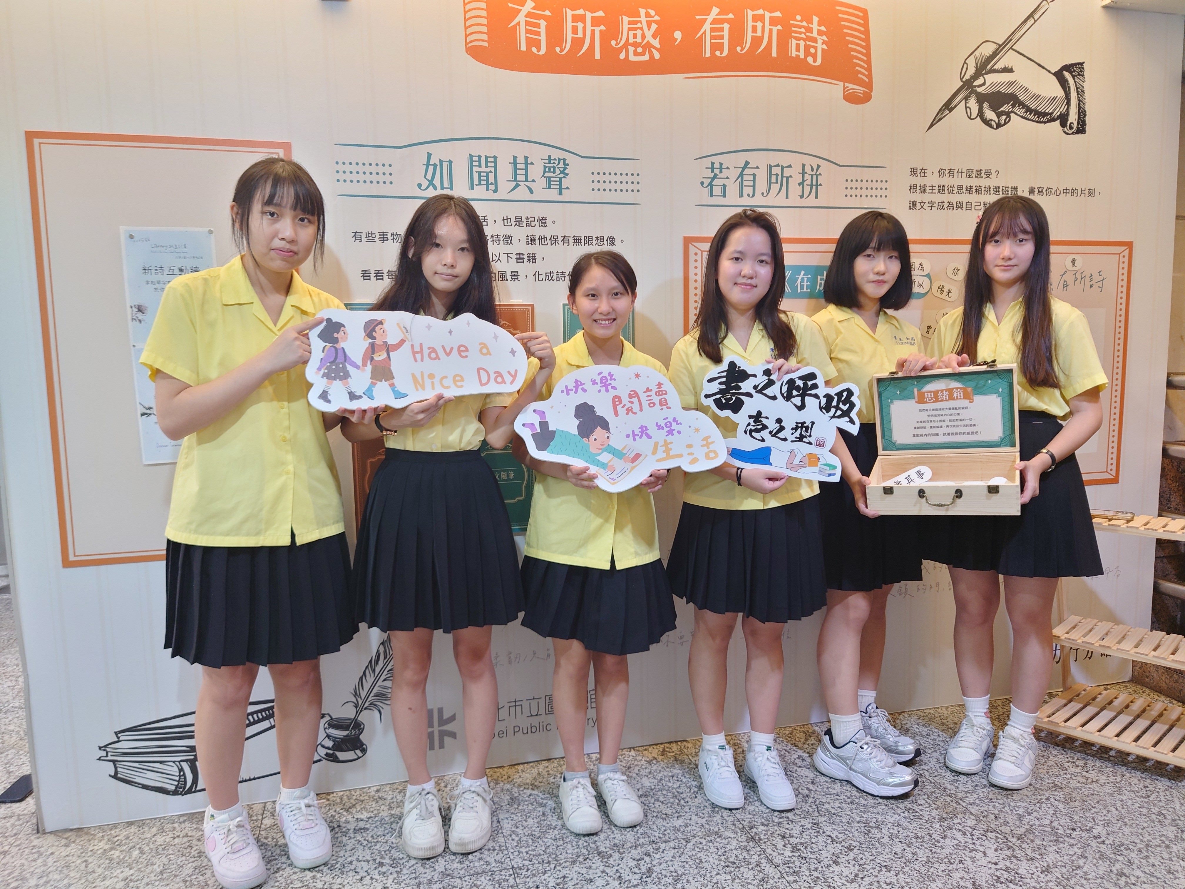 景美女中本屆社長賴軒融與參與創作的5位幹部表示,接下這項任務後才發現是一項艱鉅的挑戰,在此之前她們並不常接觸新詩,但為了配合本次特展開展時間,她們必須在3週內產出90首詩作,有的同學靠著大量閱讀、查找資料來搜尋主題,有的同學翻找舊作品檢視可以運用的片段,也有同學從生活周遭的小物、照片等物品上尋找靈感,6人齊心協力,終於如期完成了這項挑戰。而開展後,力行分館也特別邀請她們前來參觀成果,同學們開心與新詩牆合照,並表示要與親朋好友分享,讓更多人來力行分館看展。