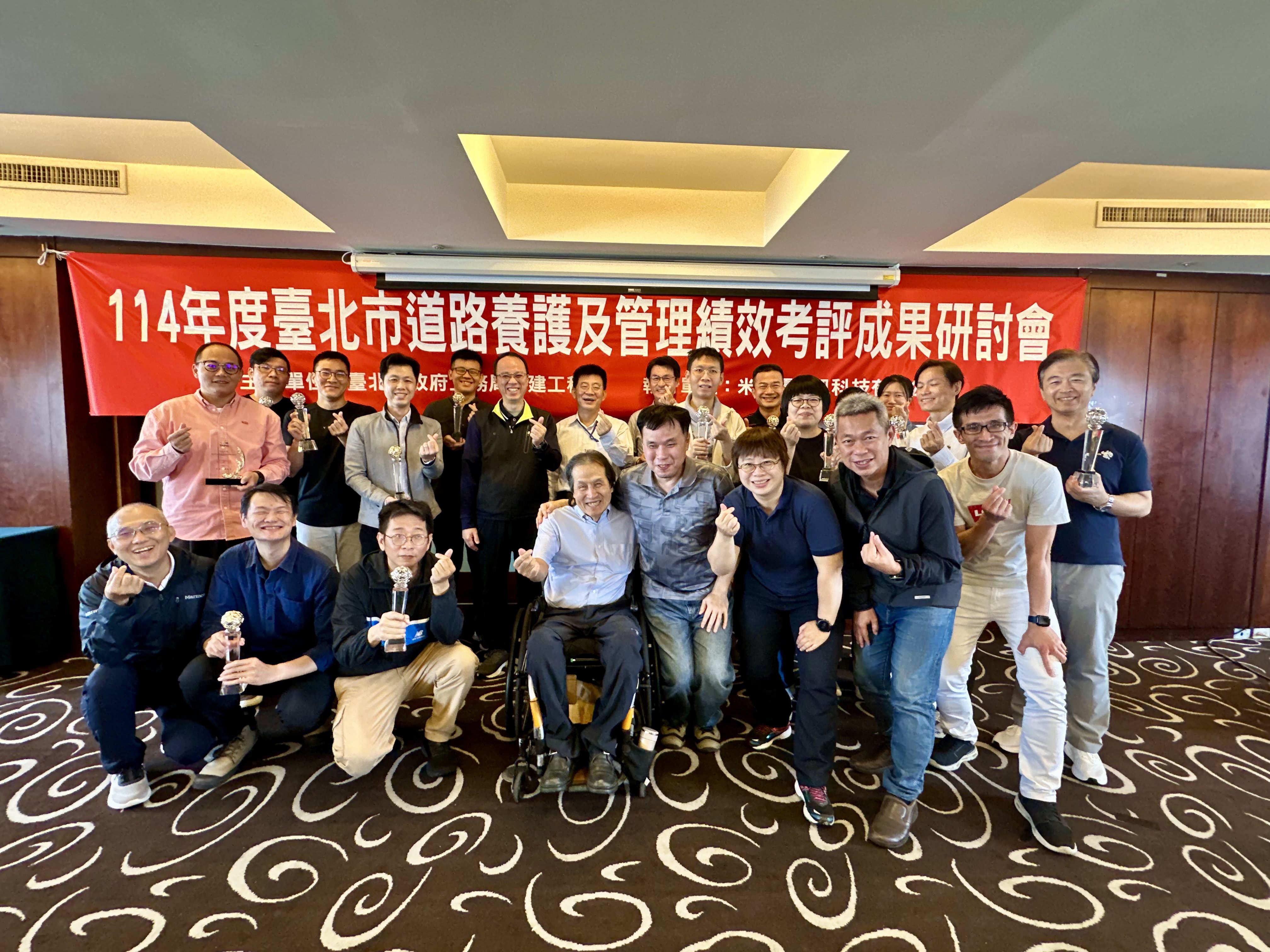 臺北市政府為使道路考評作業更能反映實際養護成效,逐步提升道路品質,提供民眾舒適、安全的用路環境,於114年11月14日假行政院公務人力發展學院舉辦「114年度臺北市道路養護及管理績效考評成果研討會」,邀集相關局處人員、考評委員、受評單位、相關技師及專家共同出席,並於會中公布考評結果,表揚114年度道路維護績優單位。