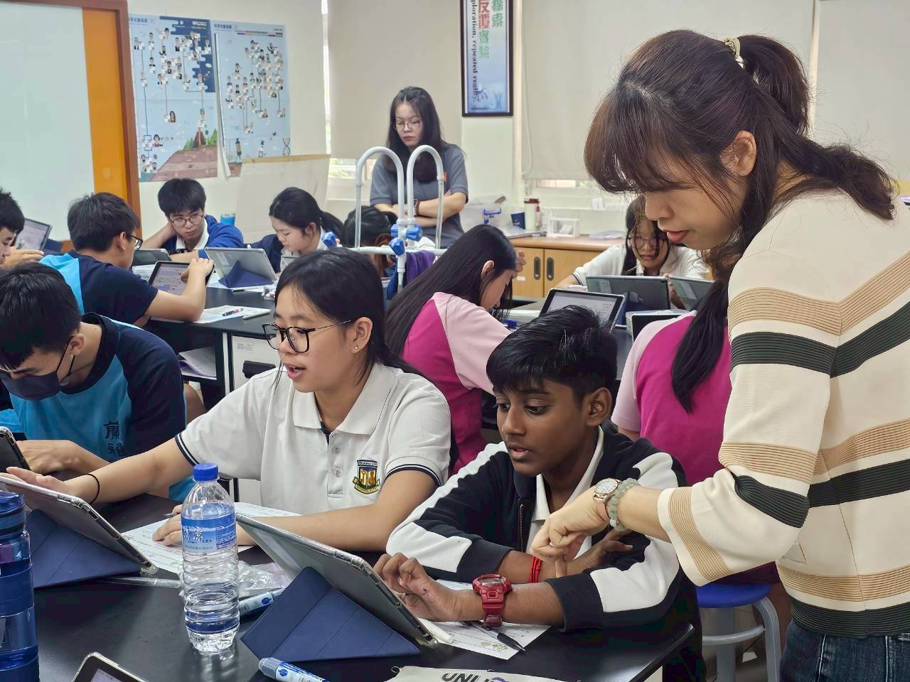 上午兩校學生走進教室,體驗臺灣中學生的日常學習。中華中學學生與學伴一同上國文、數學、地理、雙語體育與雙語音樂等課程,感受蘭雅課堂的活潑與多元;聚英中學則以STEM交流為重點,走入資優班的數學與理化課程,體驗探究學習。這場「入班共學」讓學生不僅是知識交流,也學會在文化差異中互相尊重與合作。