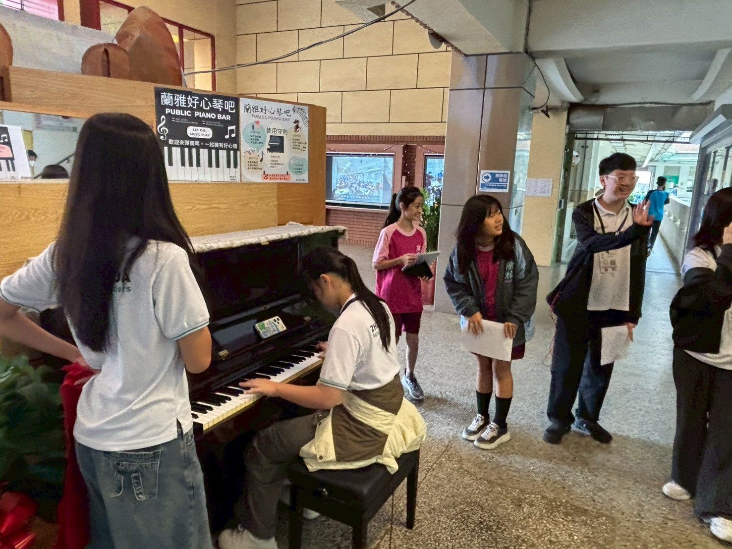 交流從「校園探索」揭開序幕,學生分組合作,手持iPad依照地圖線索尋訪蘭雅的特色景點,從川堂的好心琴吧、公仔故事,到國際廊道與生態馬賽克牆。每一站都讓新加坡學生看見蘭雅充滿活力的學習環境與美感角落,也在共同完成任務與拍照打卡的過程中,迅速拉近彼此距離。