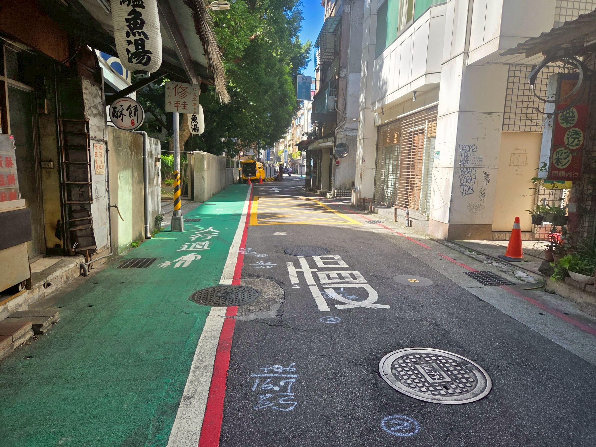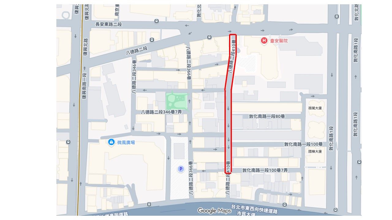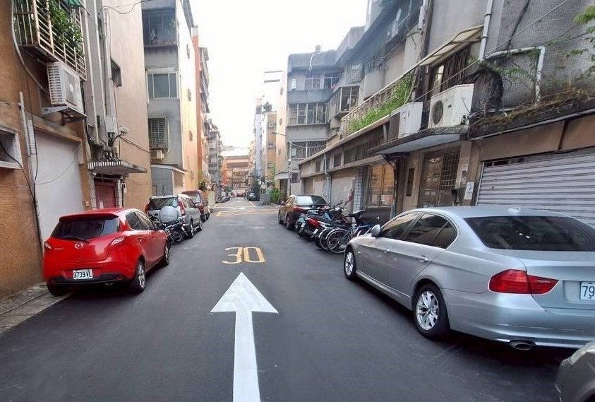 位於臺北市松山區的八德路2段410巷,周邊商店林立且加上附近醫院及消防隊等救護救災需求,在道路長久使用後,路面有明顯老舊龜裂現象,綠色標線型人行道也可見劣化情形,影響居民通行安全及生活品質,為了優化該區域的道路品質,提供市民更安全友善的通行空間,經過地方民意反映,並在臺北市政府工務局新建工程處進行現場勘查後,排訂在今(114)年辦理路面更新,並已於近期施作完成。