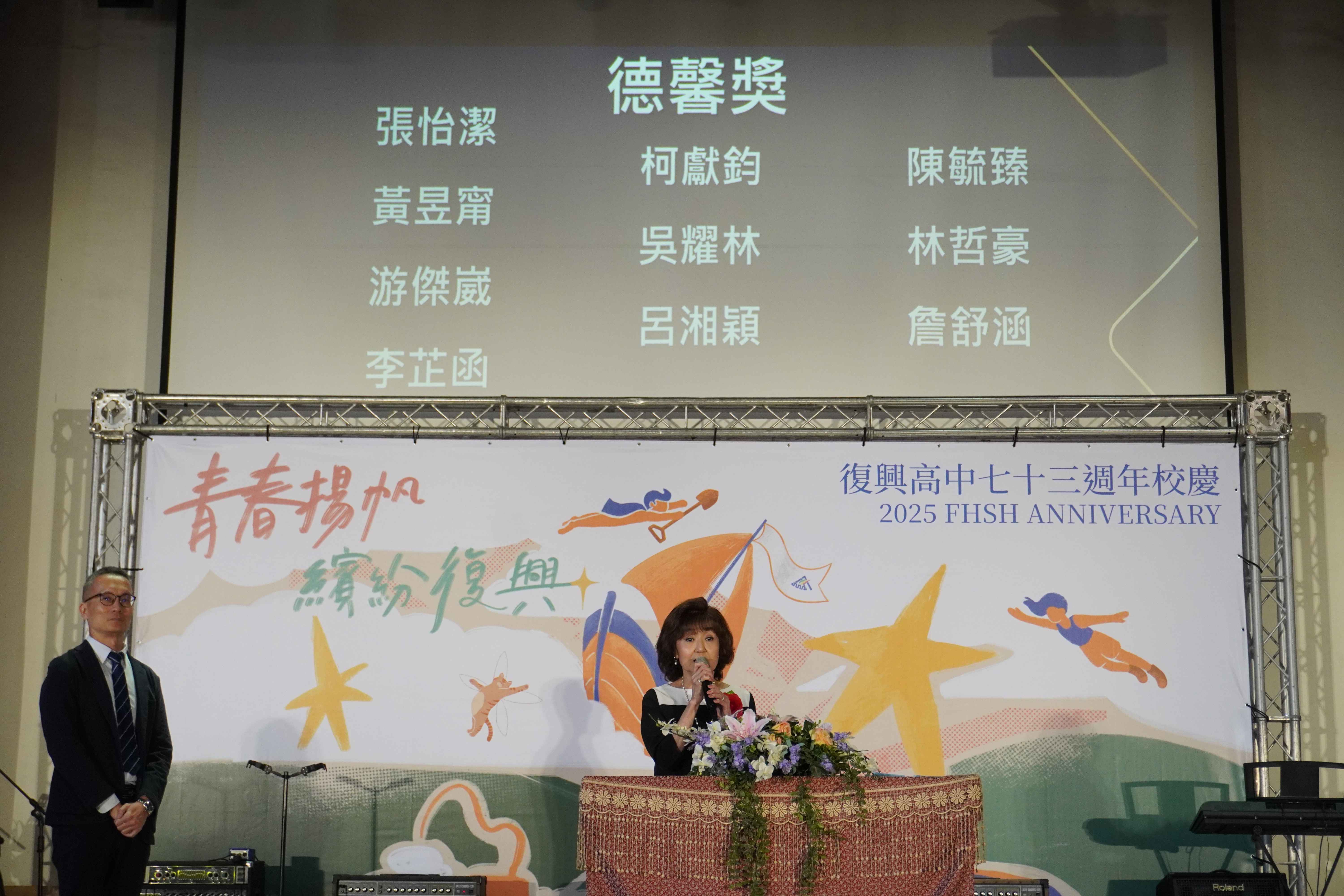 德馨獎的推動,要感謝長期支持的徐愛維女士。19年來,她每年捐助10名學生獎學金,從不以家境、成績作為門檻,只希望透過實際行動鼓勵學生「向善、行善、成為善的力量」,這份無私的付出,也正呼應復興高中倡導品德教育「三好精神」—做好事、說好話、存好心。