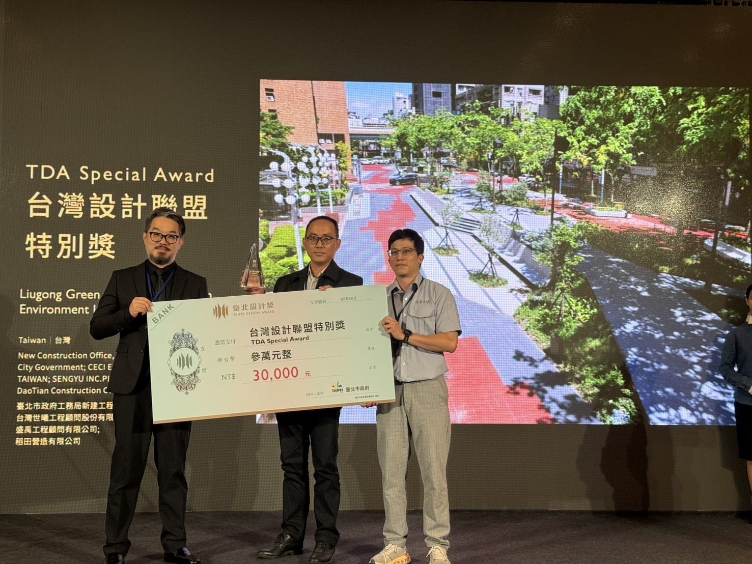 臺北市政府工務局新建工程處辦理的「瑠公綠廊人行環境改造工程」、「南港立體連通平臺及其附屬綠化設施統包工程」於114年11月21日分別榮獲社團法人中國土木水利工程學會頒發「工程永續與環境美學獎」-「特優」及「佳作」獎項。另「瑠公綠廊人行環境改造工程」同日亦獲頒2025臺北設計獎「臺北城市設計選拔」之「台灣設計聯盟特別獎」佳績,彰顯了新工處工程的優良品質與為提供市民友善人本環境的努力成果,受到多方肯定。