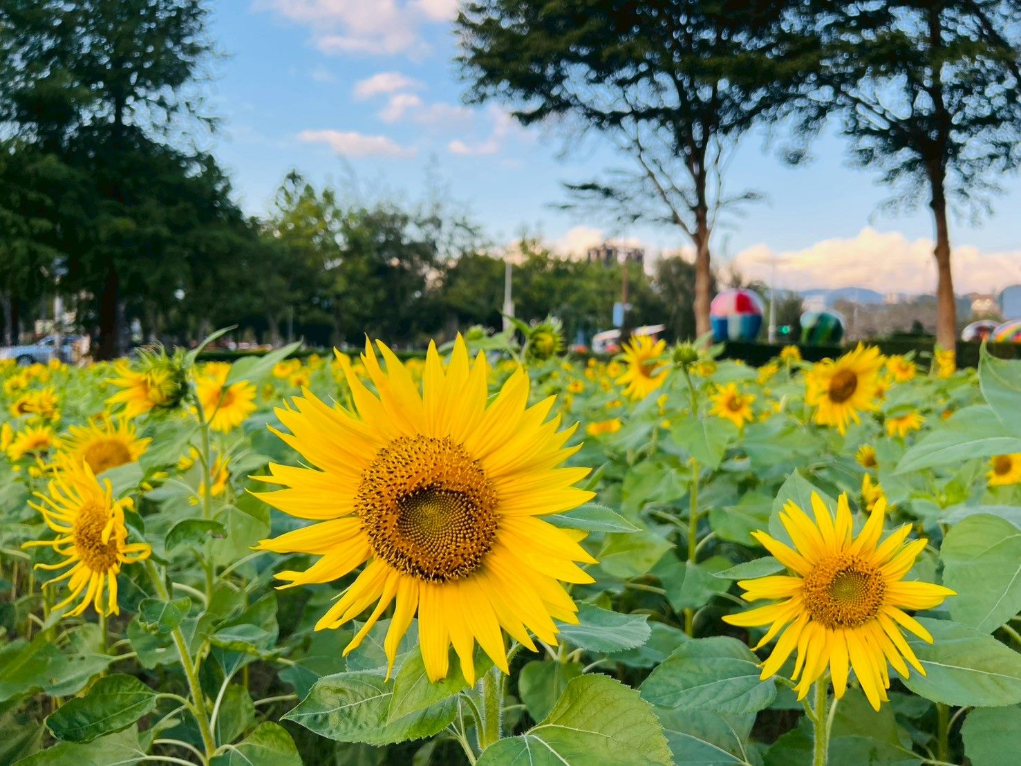 一踏入園區,首先迎接大家的是以熱氣球、飛行器與彩色花卉組成的「藝菊圓夢」展區,象徵夢想乘風而起,成打卡必訪的第一站。接著來到「向陽築夢」,展區中陸續盛開的「千陽」與「萬陽」向日葵迎光綻放,如同花語中的「勇敢」與「專一」,提醒每個追夢者,夢想從來不怕陽光太亮,而是怕你不敢追。緊接著由觀葉植物與造型菊共同打造的「夢花園」則充滿童趣與想像力,公園處園藝團隊打造的主角變色龍「花傻傻」與牠的蝴蝶、狐狸、大象、小鹿等夥伴們,各自象徵不同性格與力量,邀請大家在這裡看見最真實的自己、勇敢做自己。