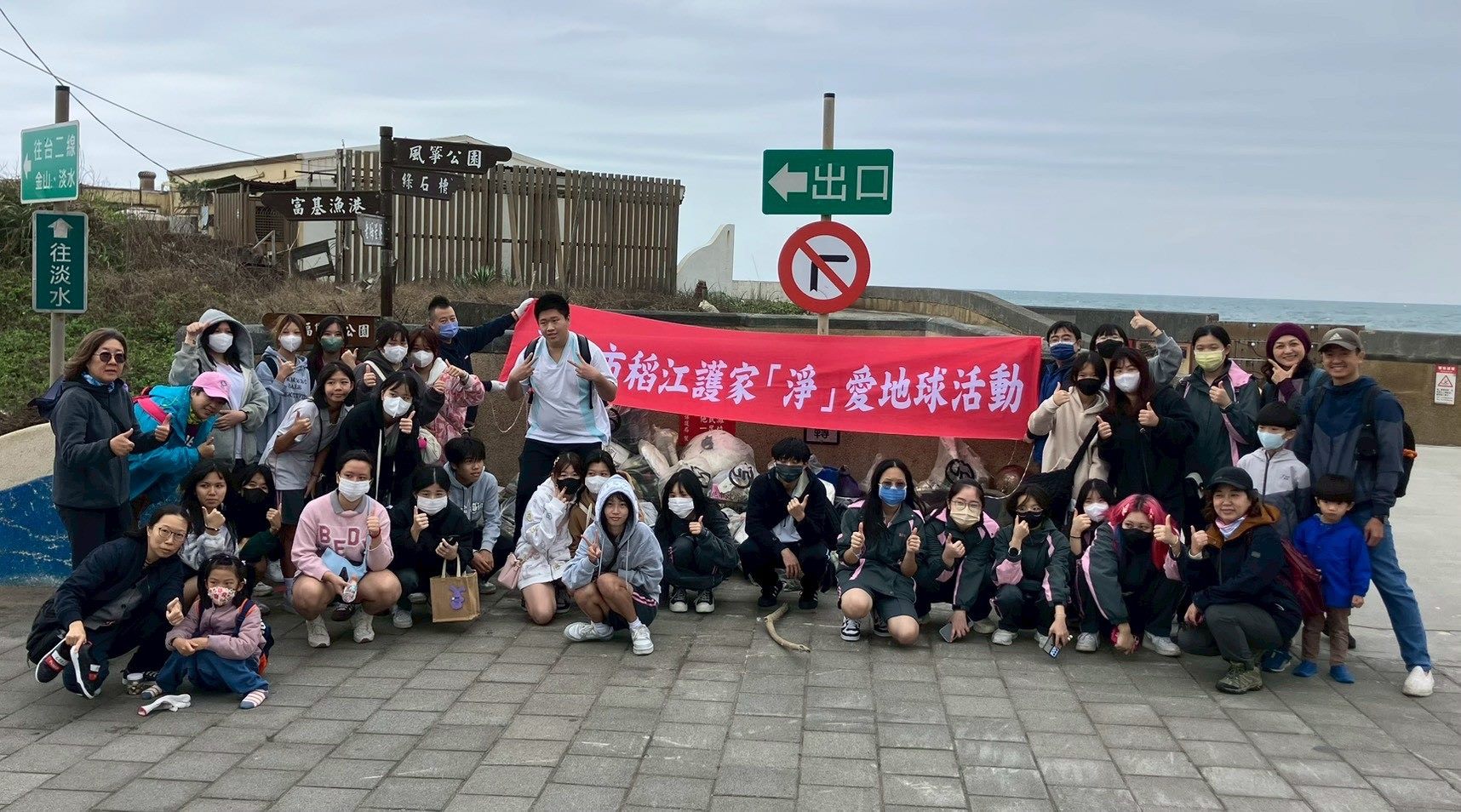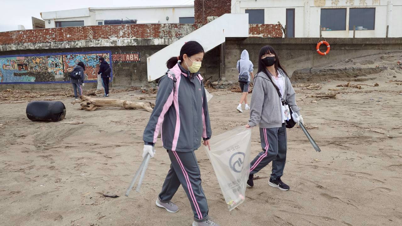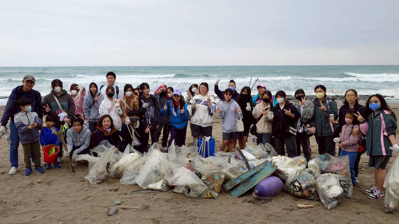 培訓結束後,公勤團隊隨即展開「淨愛地球」海灘清潔行動。同學們分組撿拾廢棄物、分類回收,從塑膠瓶、漁網到漂流木,過程中充分展現合作精神與環保意識。雖然海風強勁、氣候寒涼,但學生們依然以熱情的笑容完成每一次彎腰撿拾,將環境教育具體化為行動。