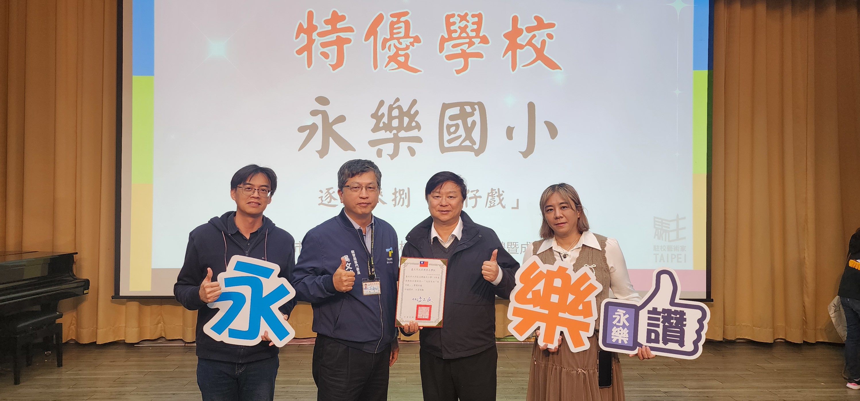 在傳統表演藝術推廣方面,永樂國小與北投國小皆以深耕本土文化為特色。永樂國小「逐家來捌歌仔戲」讓學生從唱腔、身段到化妝服飾完整體驗歌仔戲魅力,學生更受邀到保安宮、大稻埕等舞臺完成多場演出,讓傳統戲曲在校園再度綻放光彩;北投國小「台語說唱藝術──月琴民謠彈唱」則帶領學生從簡譜到自彈自唱〈白鷺鷥〉、〈望春風〉,並多次受邀在慈濟醫院、溫泉季與月琴民謠祭演出,清亮琴聲驚豔全場,展現深厚的在地文化能量。視覺藝術方面,忠孝國小以「纖維創四季──臺北氈遊記」獲特優,學生從生活觀察出發,以臺北城市四季與「奇幻角色」為主題創作立體故事書與羊毛氈作品,並於校內、外展覽亮相,成功將藝術帶出教室、走進社區。